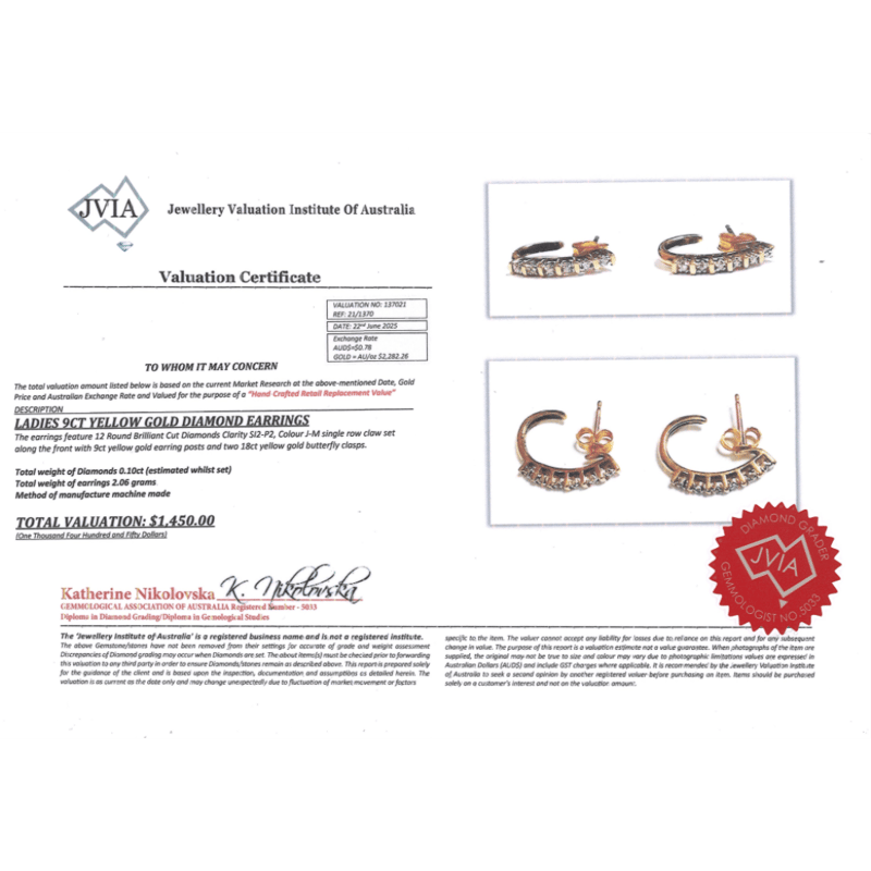 The Designs Feature, 12 Round Brilliant Cut, Diamonds (0.10Ct Tdw, J-M Colour, Si2-P2 Clarity), Row Claw Set. The Earrings Feature 9Ct Yellow Gold Butterfly Claps. Total Item Weight Is 2.06 Grams. Condition: Pre-Owned.