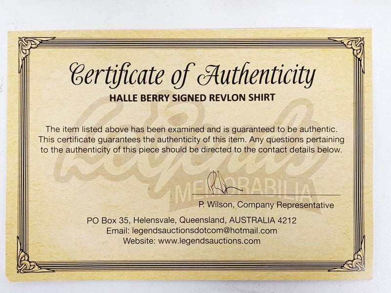 HALLE BERRY HANDSIGNED & ENSCRIBED REVLON SHIRT