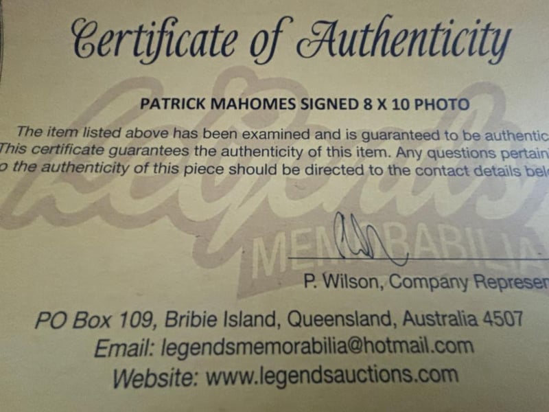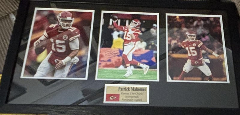 NFL STAR PATRICK MAHOMES SIGNED & FRAMEDPatrick Mahomes Personally Signed 8 X 10 Photo. The Photo Has Been Framed With Two Unsigned Action Photos Of The Star Quarterback And Plaque. Measuring 800 X 440, This Is Ready To Hang. The Item Is Accompanied By A Certificate Of Authenticity.Condition: Good - Refer To Images585045+71