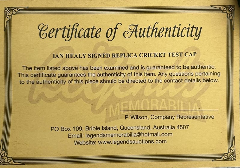 A Replica Australia Test Cap Personally Signed By Ian Healy. Ian Healy Is A Former Australian International Cricketer Who Played For Queensland Domestically. The Item Is Accompanied By A Certificate Of Authenticity.