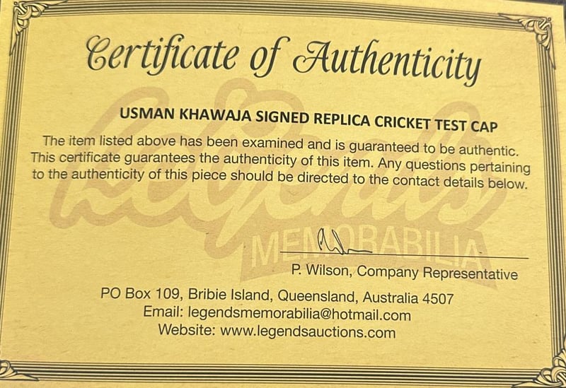 USMAN KHAWAJA SIGNED REPLICA AUSTRALIAN TEST CAP A Replica Australia Test Cap Personally Signed By Usman Khawaja. Usman Khawaja Is An Australian International Cricketer Who Represents The Australia National Cricket Team. The Item Is Accompanied By A Certificate Of Authenticity.Condition: Good - Refer To Images585045+18