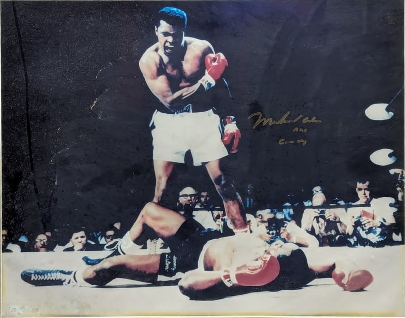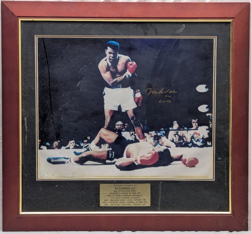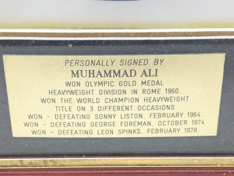 Frame Features Signed Photo And Plaque Listing Muhammad Ali Winning Title Fights