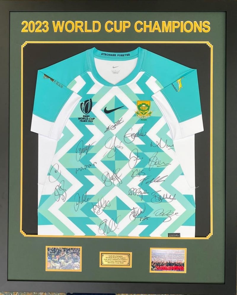 2023 SOUTH AFRICAN SPRINGBOKS PERSONALLY SIGNED JERSEY "2023 RUGBY WORLD CUP CHAMPIONS"
