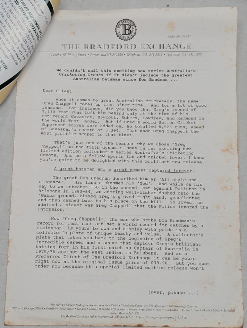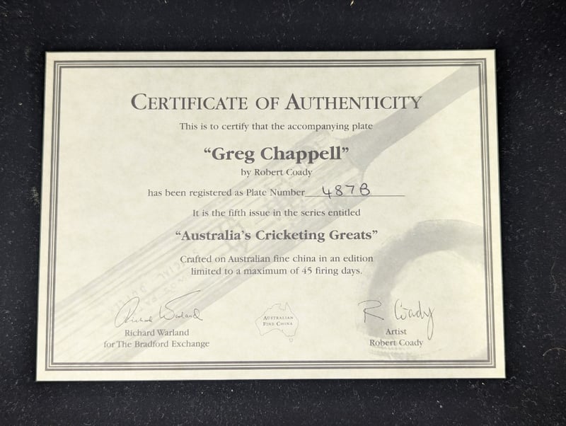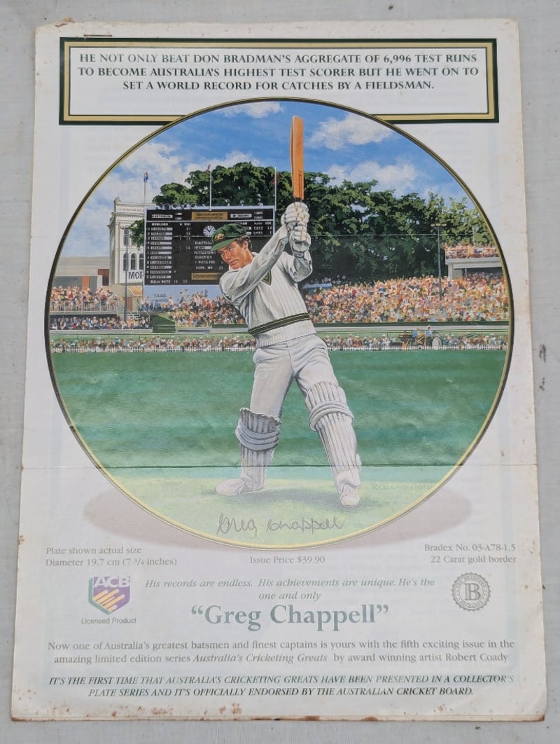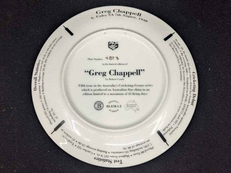 LIMITED EDITION AUSTRALIAN CRICKETING GREATS COMMEMORATIVE PLATE, 'GREG CHAPPELL'