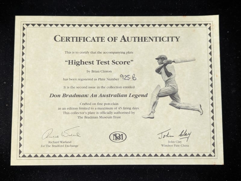 Plate Number: 925-B, Second Issue In The Don Bradman: An Australian Legend Collection, Plate Diameter: 20Cm