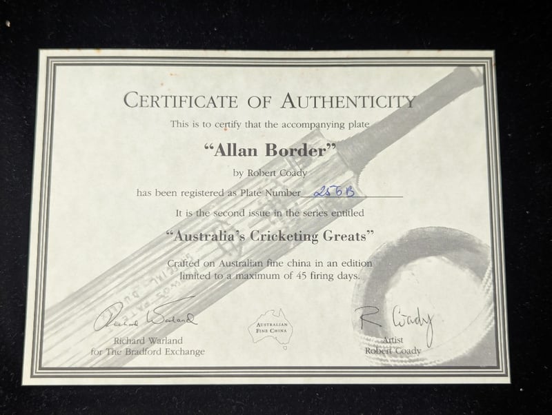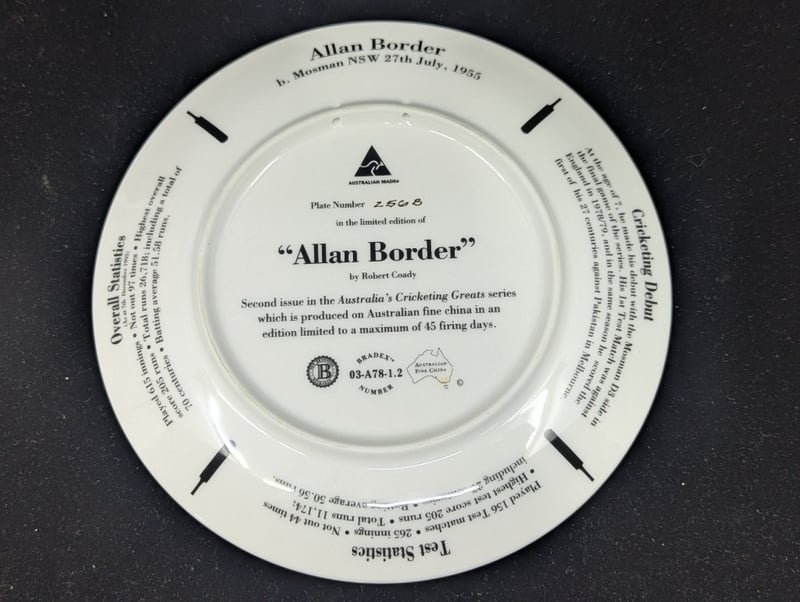 LIMITED EDITION AUSTRALIAN CRICKETING GREATS COMMEMORATIVE PLATE, ''ALLAN BORDER''