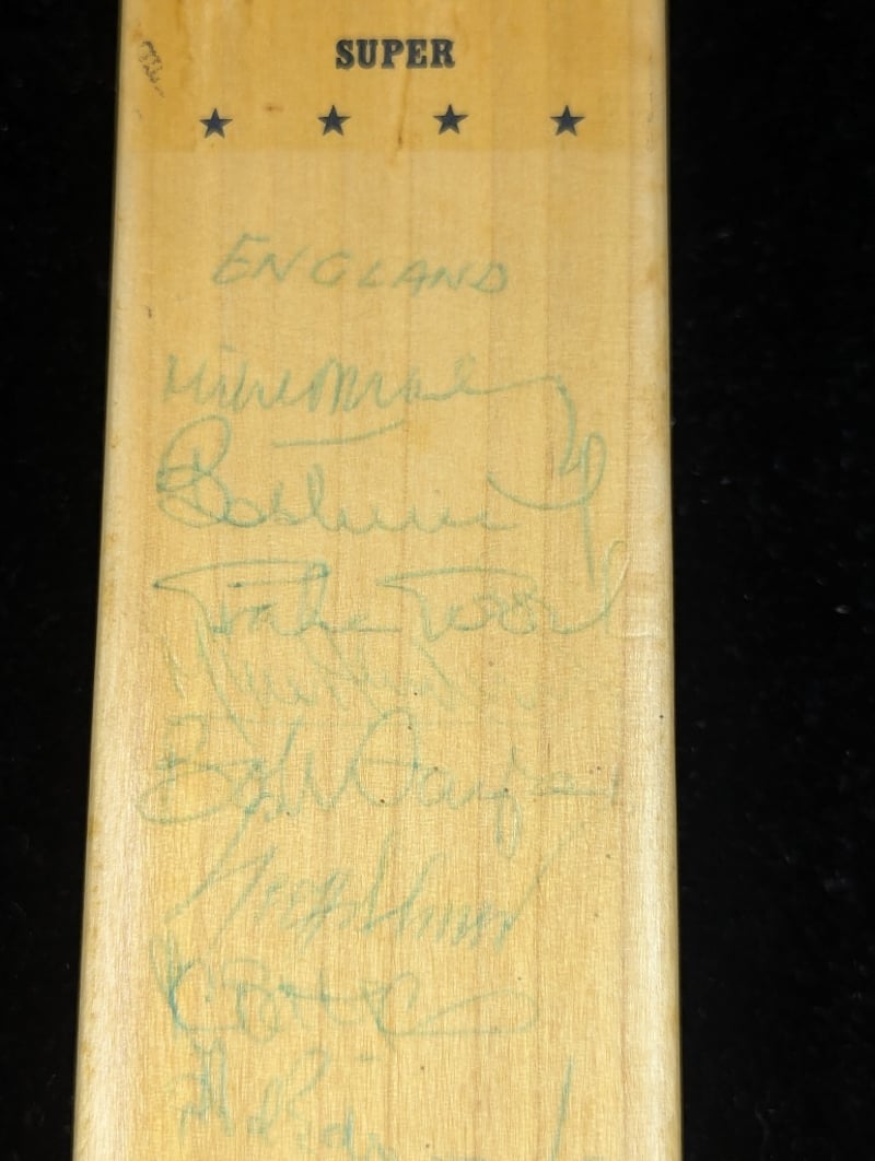 Bat Features Various Signatures, Word 'England' Followed By Approx 28 Signatures