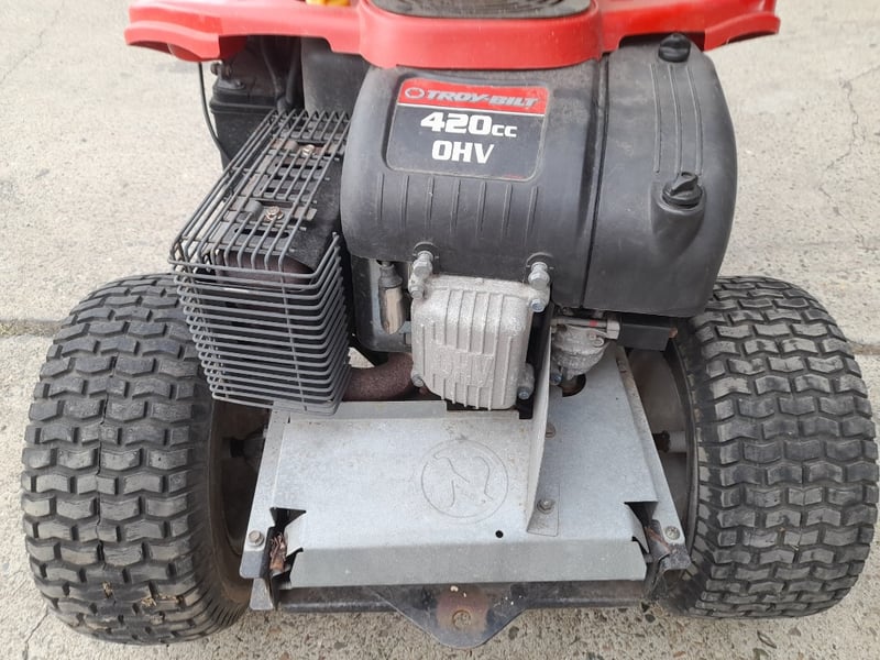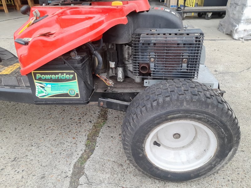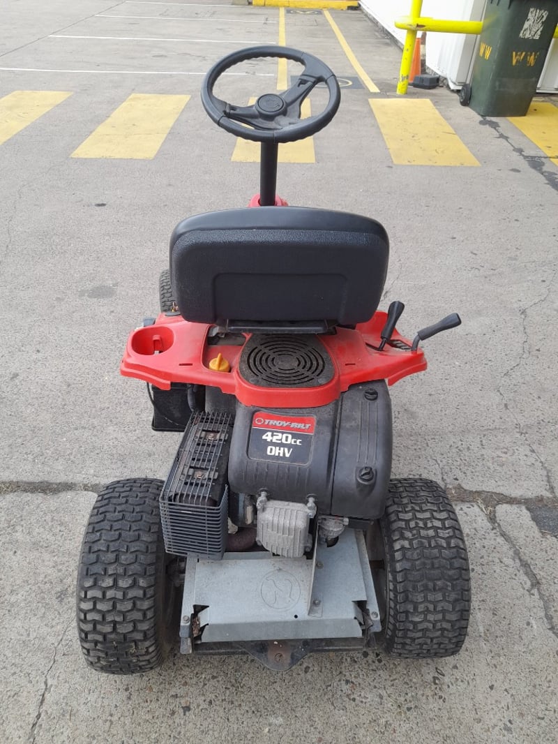 Description: Non running ride on mower, missing the cutting deck, can not cut grass with this machine, it is not starting, 4 stroke 420cc petrol engine
