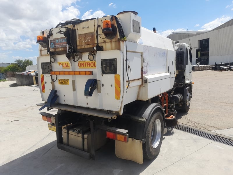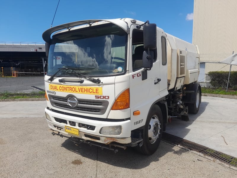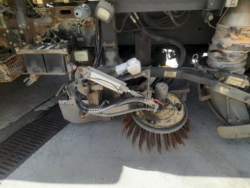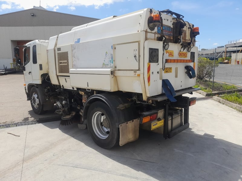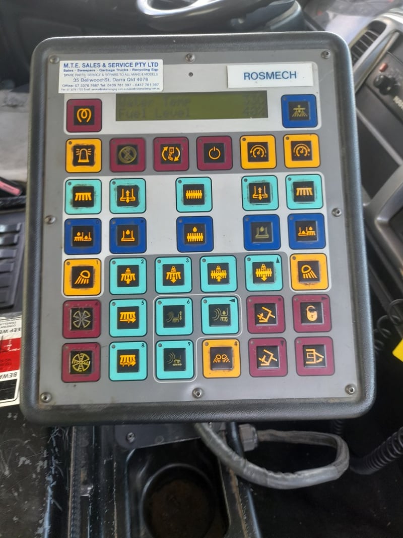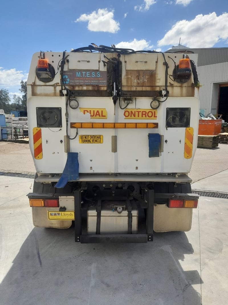 Dual steer twin steering wheel Street sweeping vehicle, in working condition, all control are functional from inside the cab, along with kenwood CD player, dash mat car seat covers, UHF radio, LED traffic master lighting beacons, owners manual