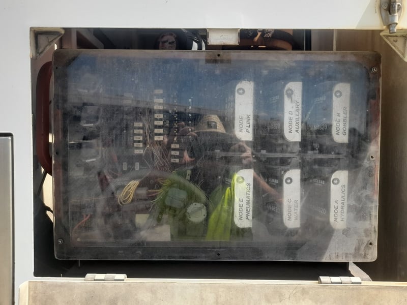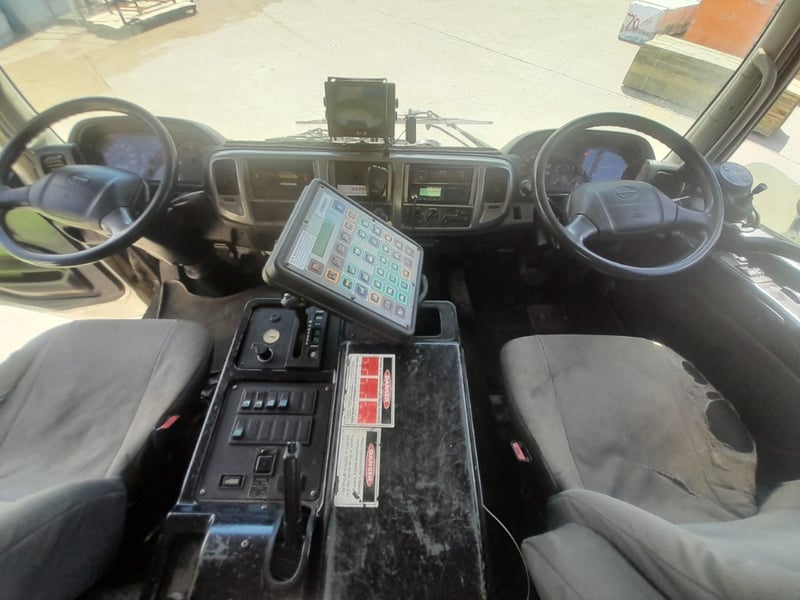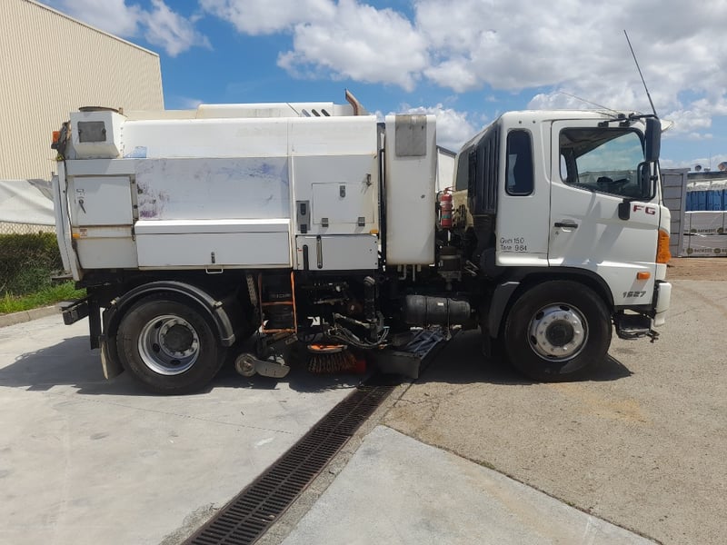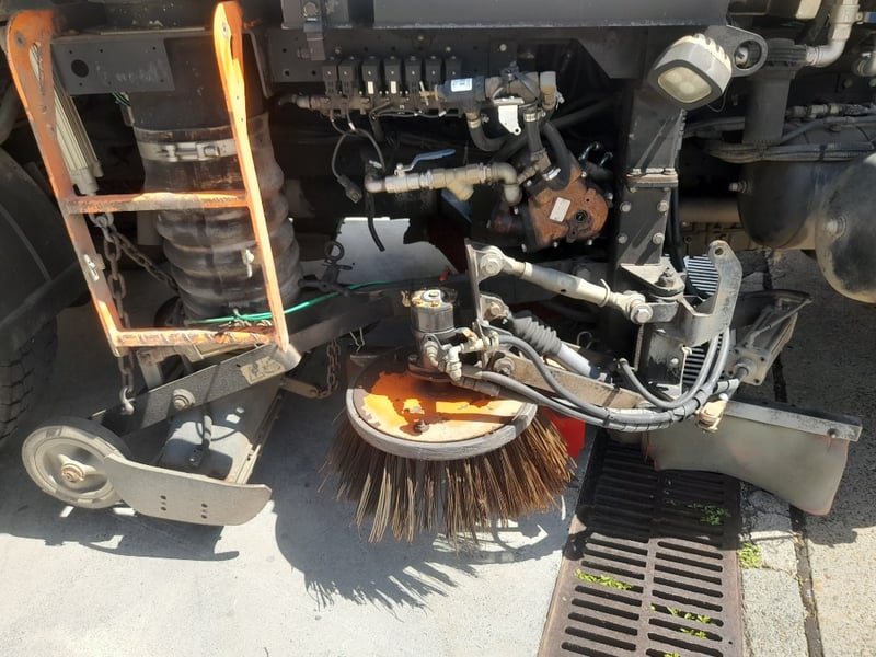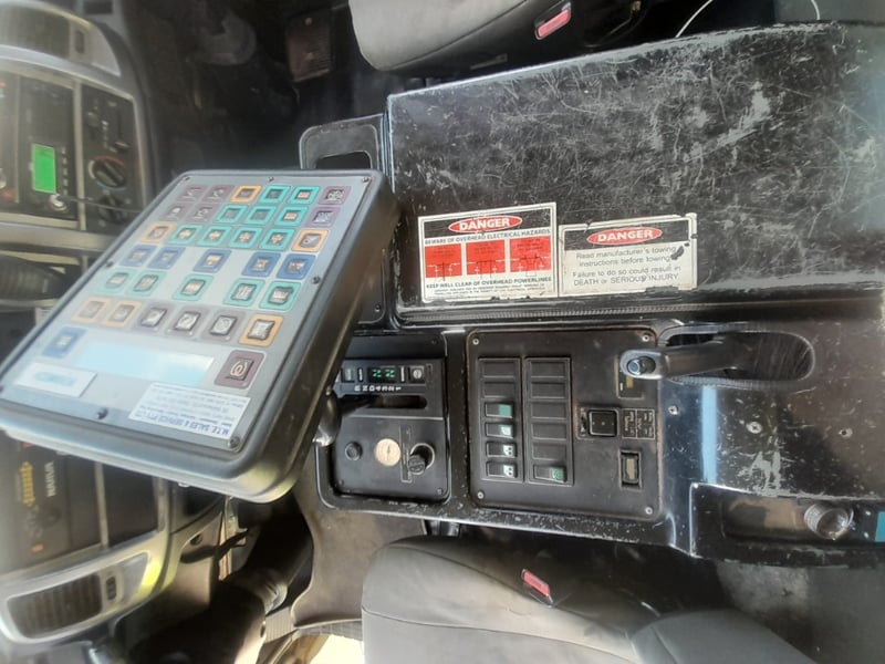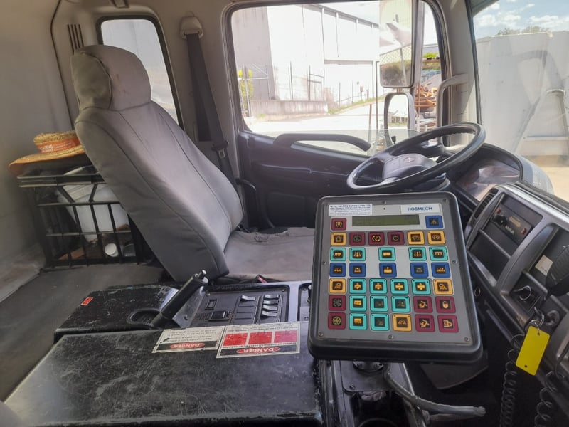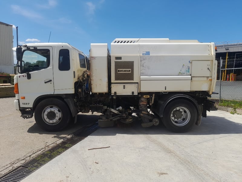 Dual steer twin steering wheel Street sweeping vehicle, in working condition, all control are functional from inside the cab, along with kenwood CD player, dash mat car seat covers, UHF radio, LED traffic master lighting beacons, owners manual