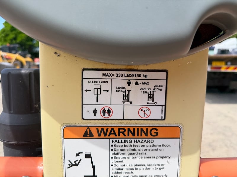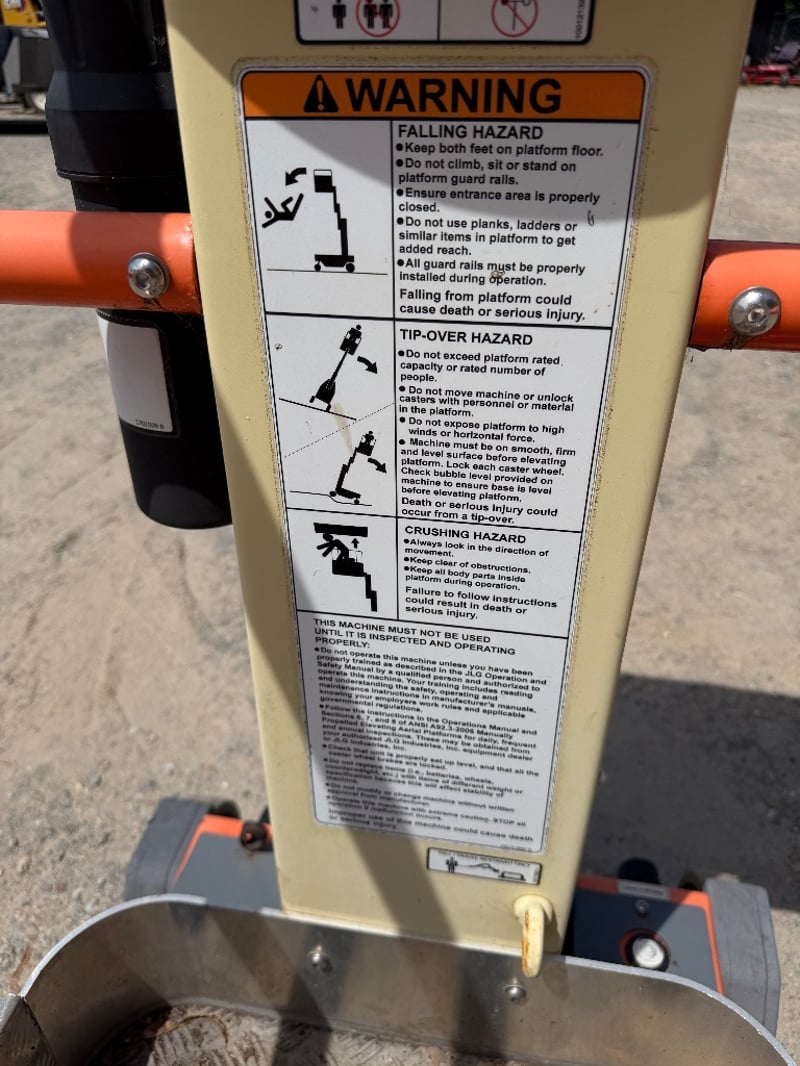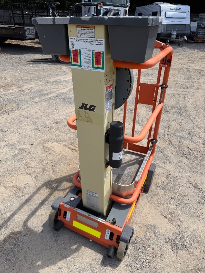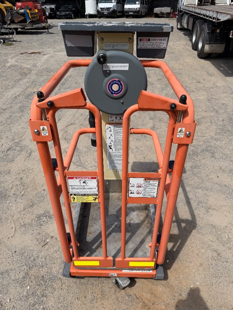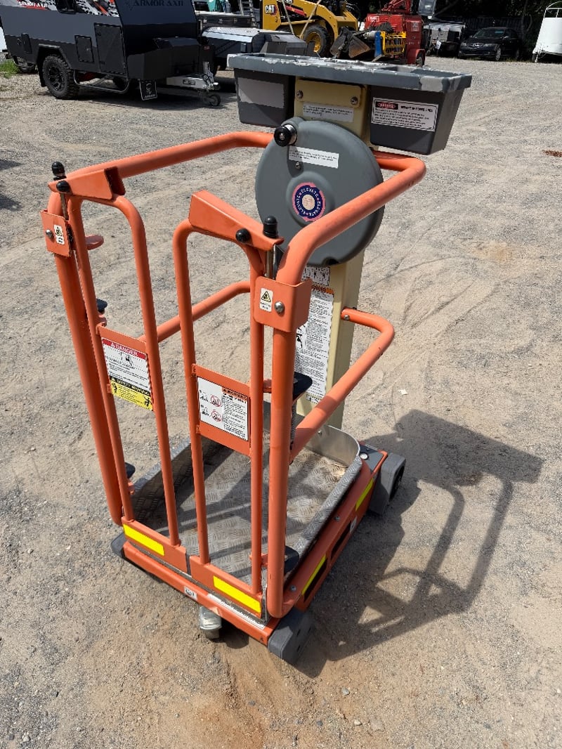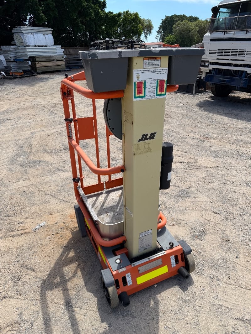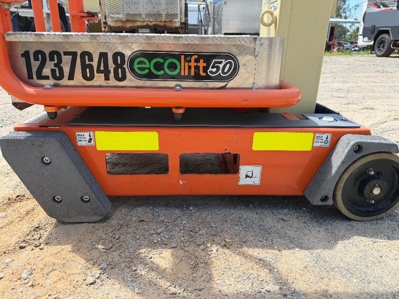 JLG EcoLift 50, non-powered, push-around vertical lift designed as a safer, more ergonomic alternative to ladders for low-level indoor work.Key Features & Specifications:Machine Height: 5ft, 1in or 155cmMax Platform Capacity: 330lb or 150kgMax Platform Height: 5ft or 152cmPower-Free: Operates without batteries, hydraulics, or oil, making it ideal for noise-sensitive or clean areas.Ergonomic & Safe: Allows 360-degree, hands-free work, eliminating the need for three points of contact like a ladder, with auto-locking brakes and a safety latch on the crank.Easy to Use: A simple hand crank raises the platform in about 11 seconds, with a stored power system requiring minimal effort.Compact & Lightweight: Narrow enough to fit through standard doorways and light enough to be moved in elevators, with protective wall bumpers.Low Maintenance: Fewer components mean lower maintenance costs and more uptime.Capacity: Handles up to 330 lbs (150 kg) for tools and materials. Serial No.: P900002896(Key #NoKey Carrara)