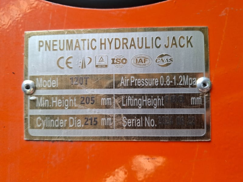 Description/Extras: 120 T - 60 T, Air pressure 0.8-1Mpa, Cylinder Dia. 215mm, min height 205mm, maximum height, 180mm