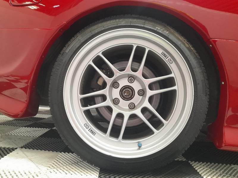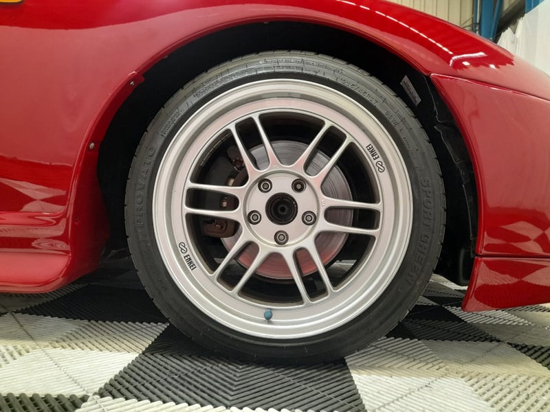 Suspension has been upgraded with TEIN Flex Z coilovers, while rolling stock consists of 17-inch lightweight Enkei RPF1 wheels. Factory-optioned genuine aero body kit fitted, along with new OEM front inner guard arch liners. Interior presents in black leather with factory black leather SR2 Recaro seats. Equipment includes air conditioning, power windows, digital dash, tinted windows, central locking, and owner’s manual.