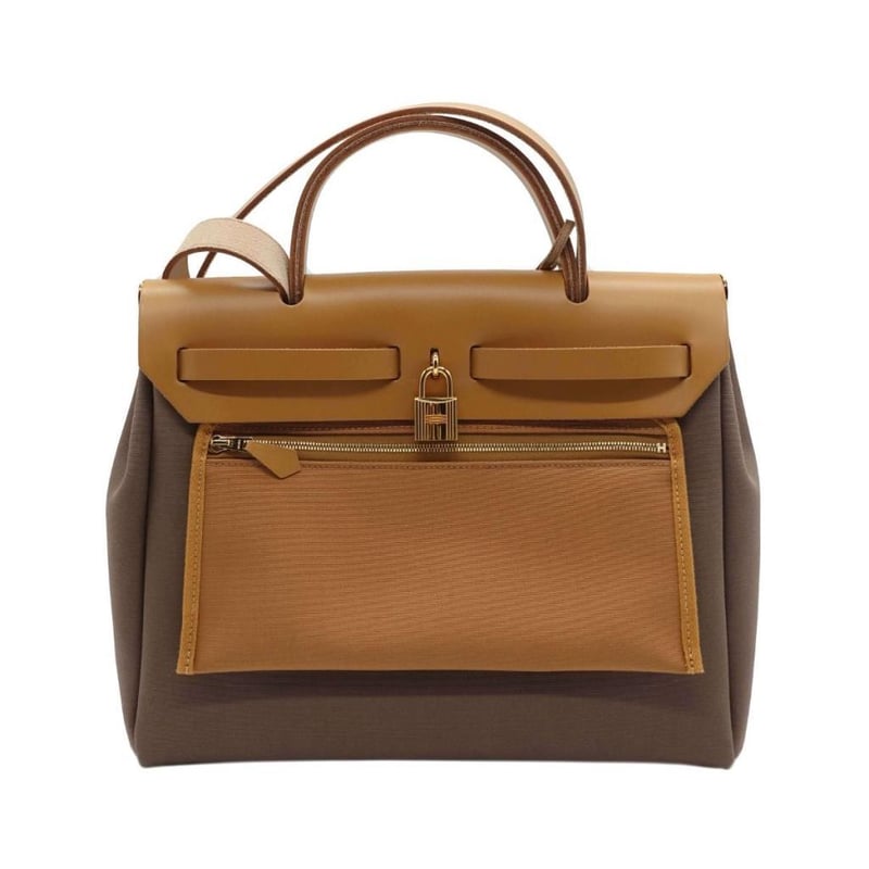 HERMES HERBAG ZIP 31 ETOUPE/DUNE CANVAS WITH FAUVE VACHE HUNTER LEATHER