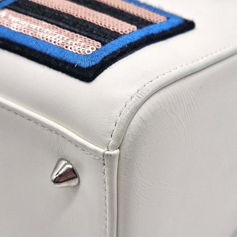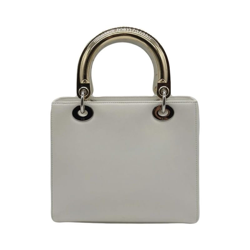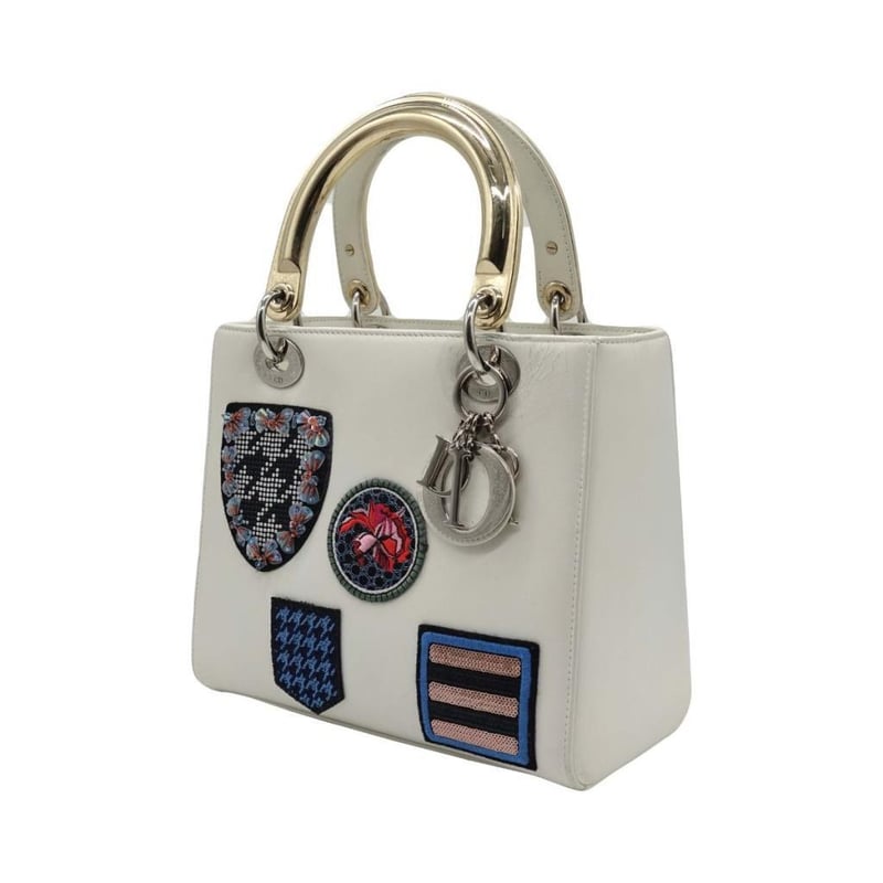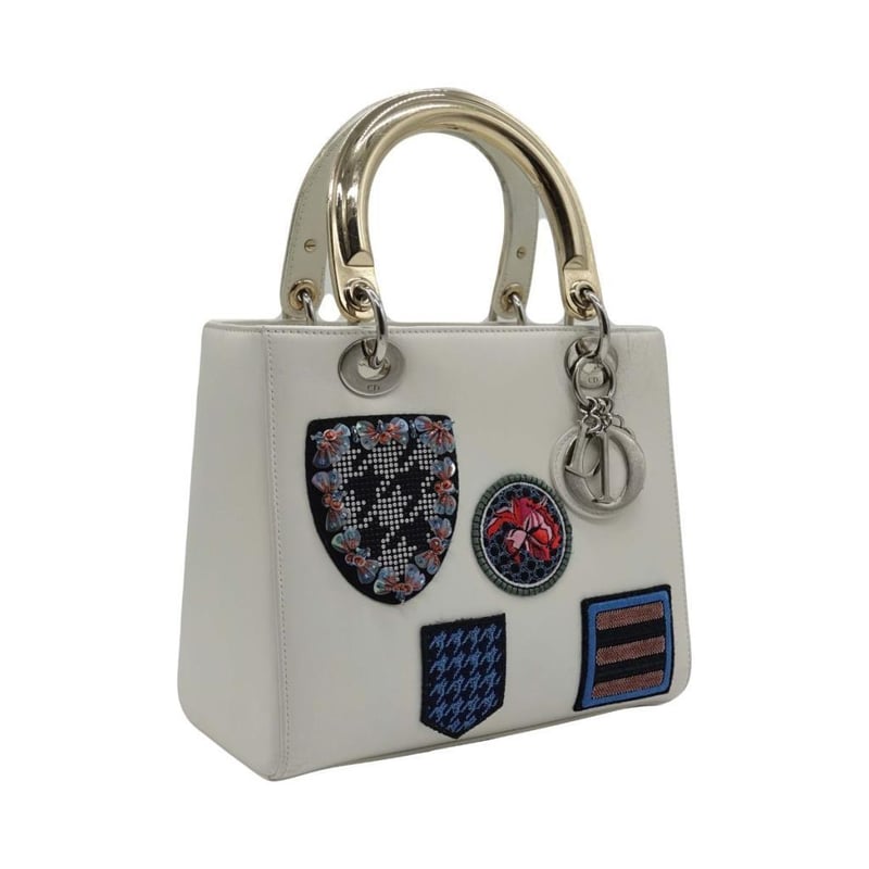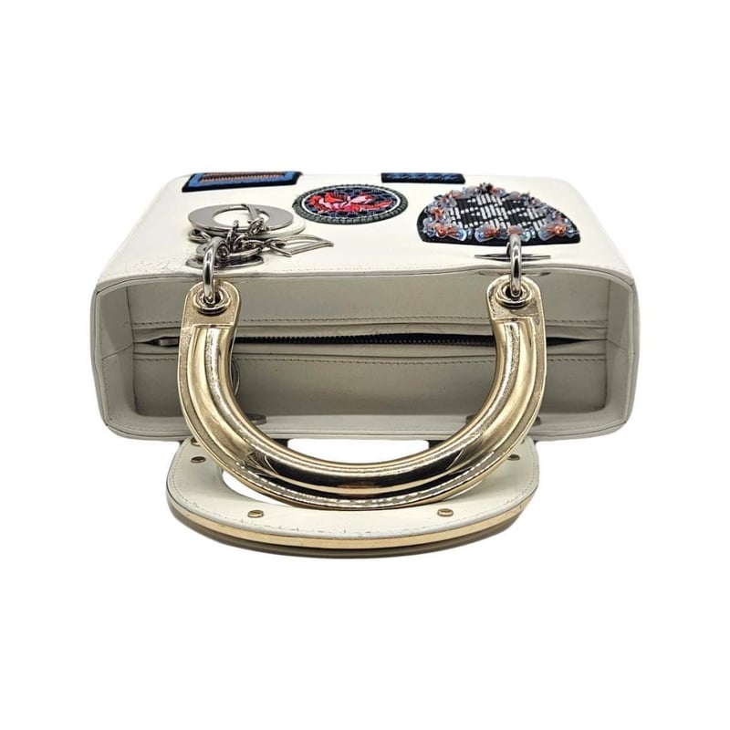 CHRISTIAN DIOR WHITE MEDIUM CALFSKIN PATCH EMBELLISHED LADY DIOR