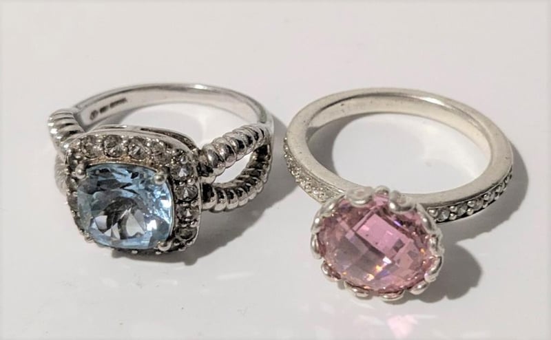 STERLING SILVER RINGS, PINK & BLUE STONES