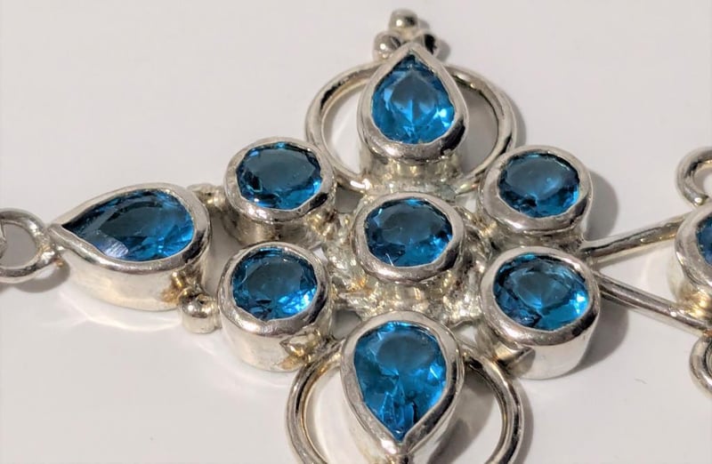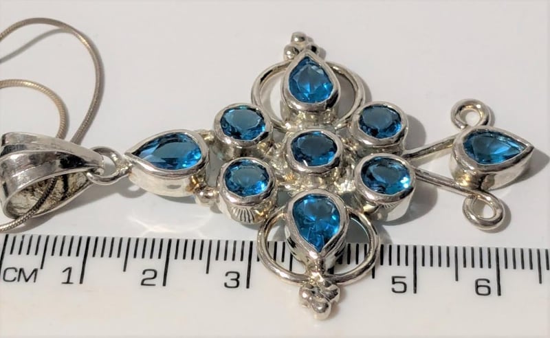 STERLING SILVER LARGE PENDANT WITH BLUE STONES