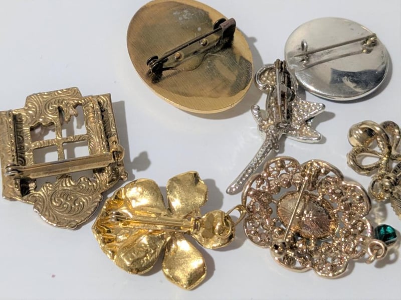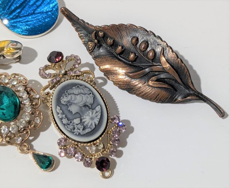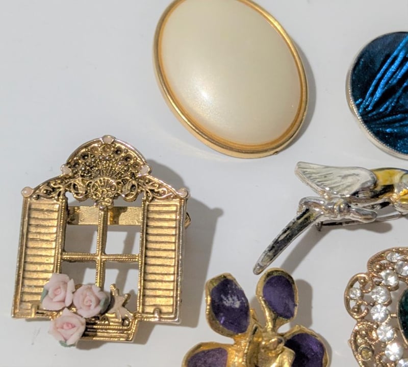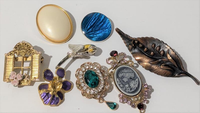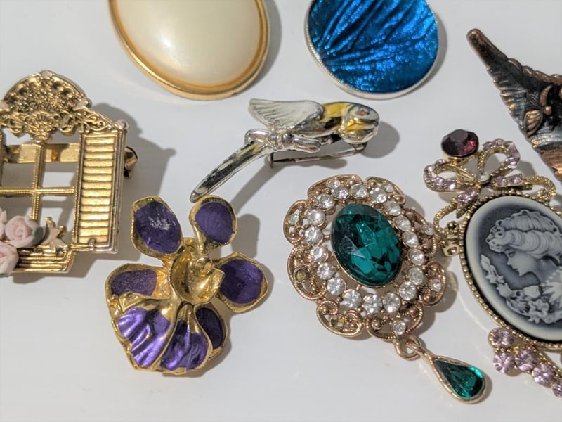 BROOCHES INCL LEAF, ORCHID & BIRD, QTY OF 8
