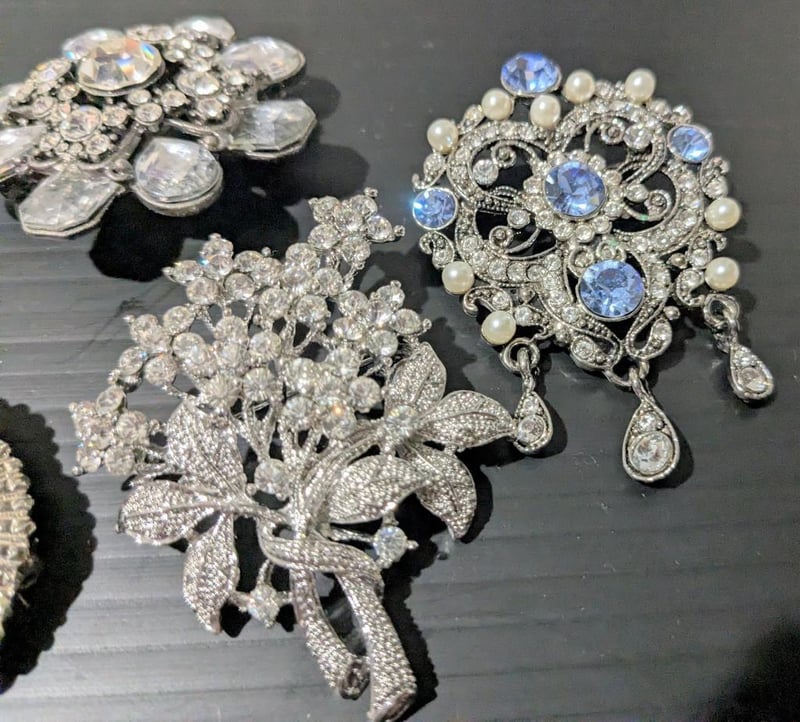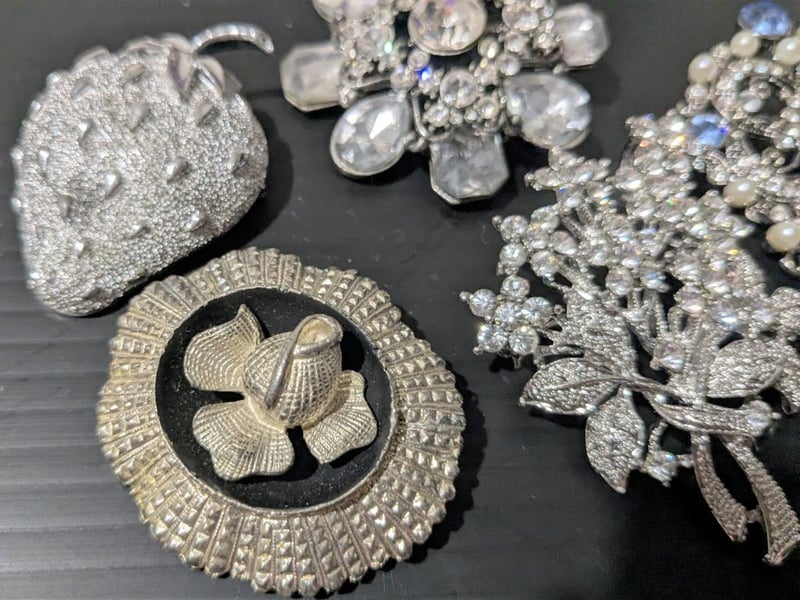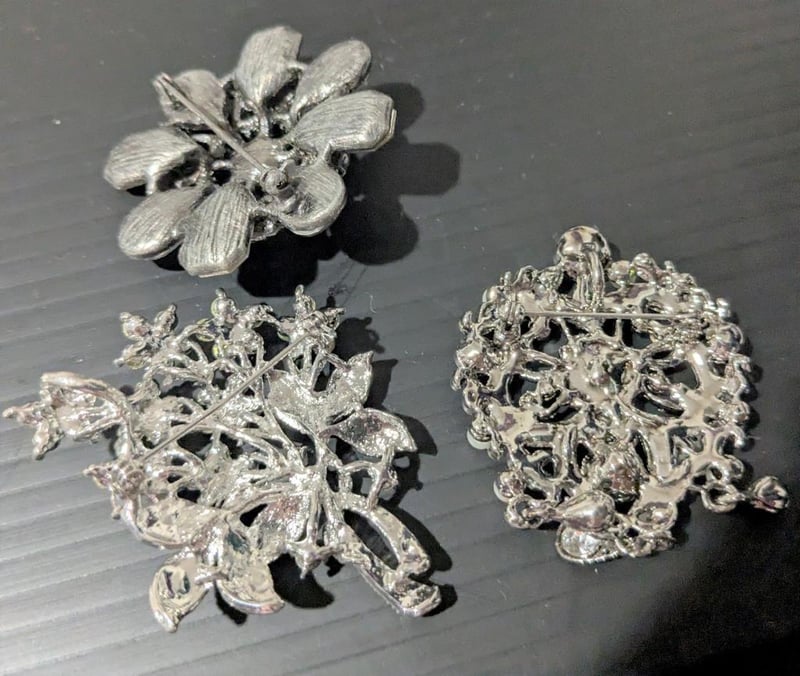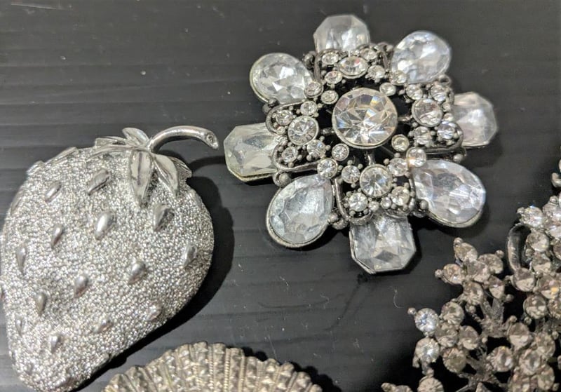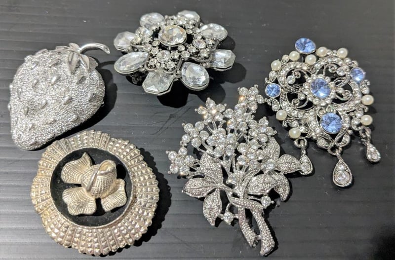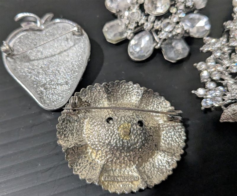 BROOCHES INCL STRAWBERY, BUNCH FLOWERS, RHINESTONE, QTY OF 5
