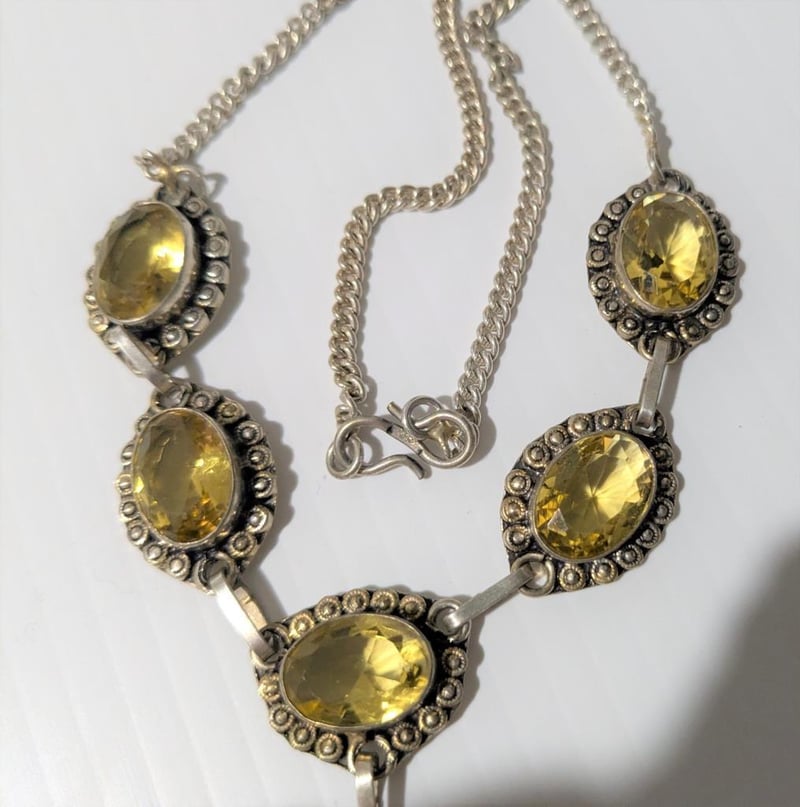 STERLING SILVER CITRINE GEMSTONE NECKLACE