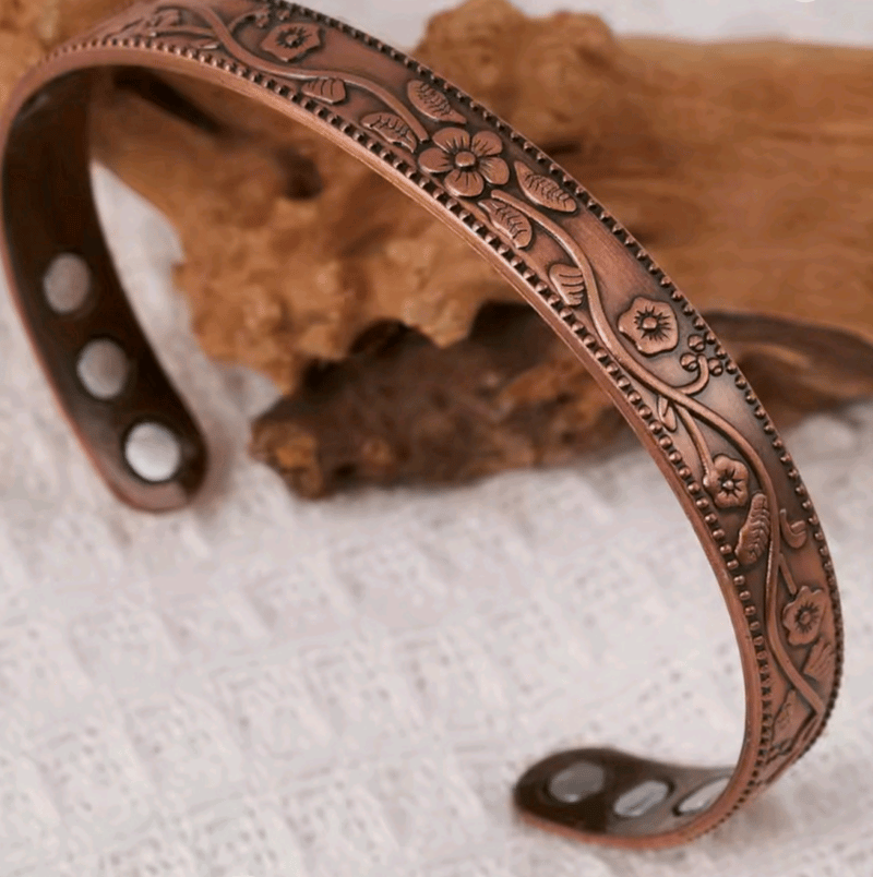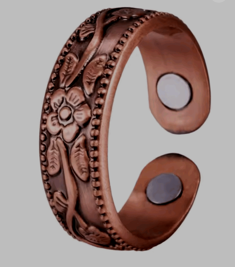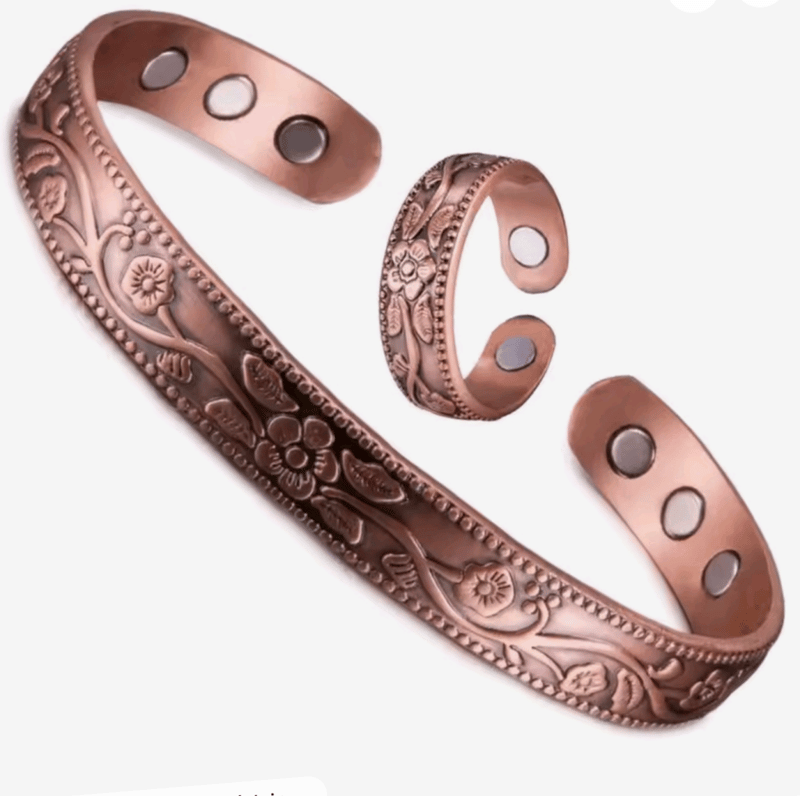 EMBOSSED MAGNETIC COPPER BANGLE AND RING SET
