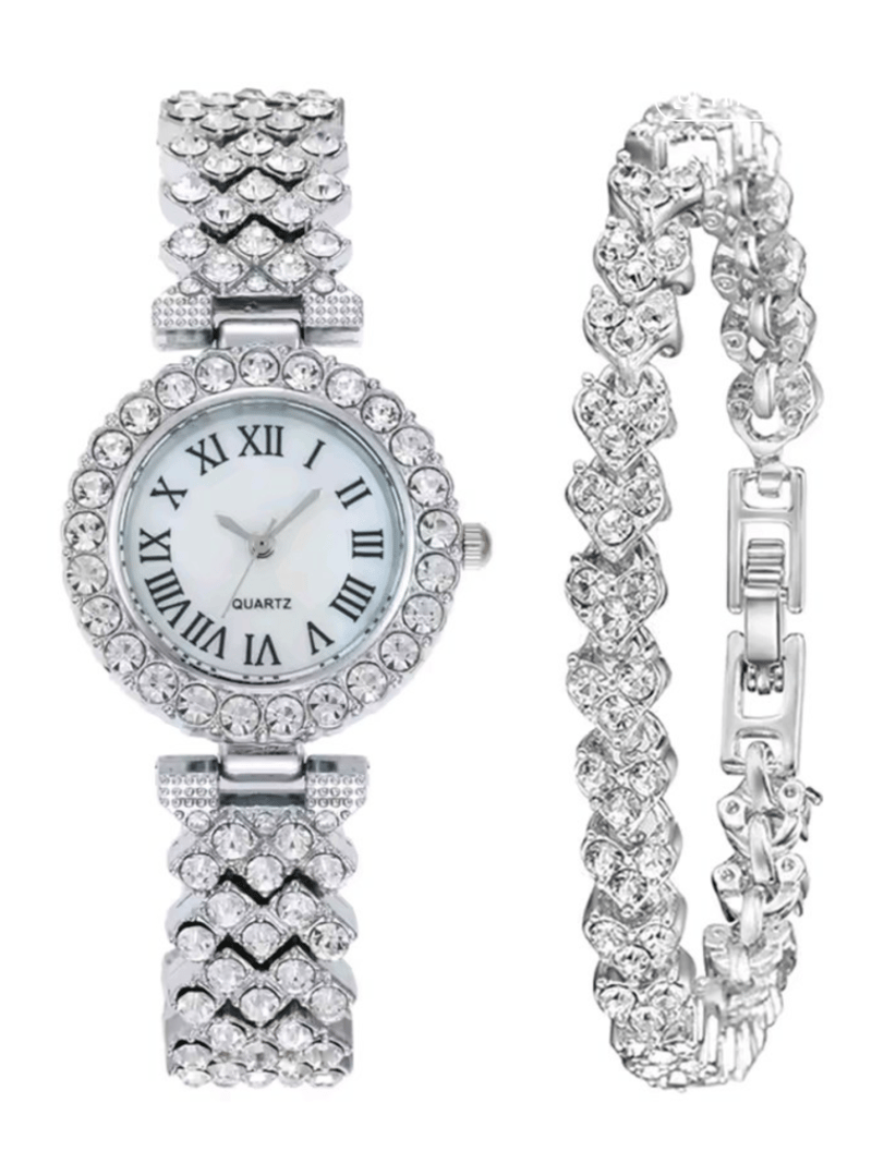 STAINLESS STEEL WATCH AND BRACELET WITH WHITE ZIRCONIAS
