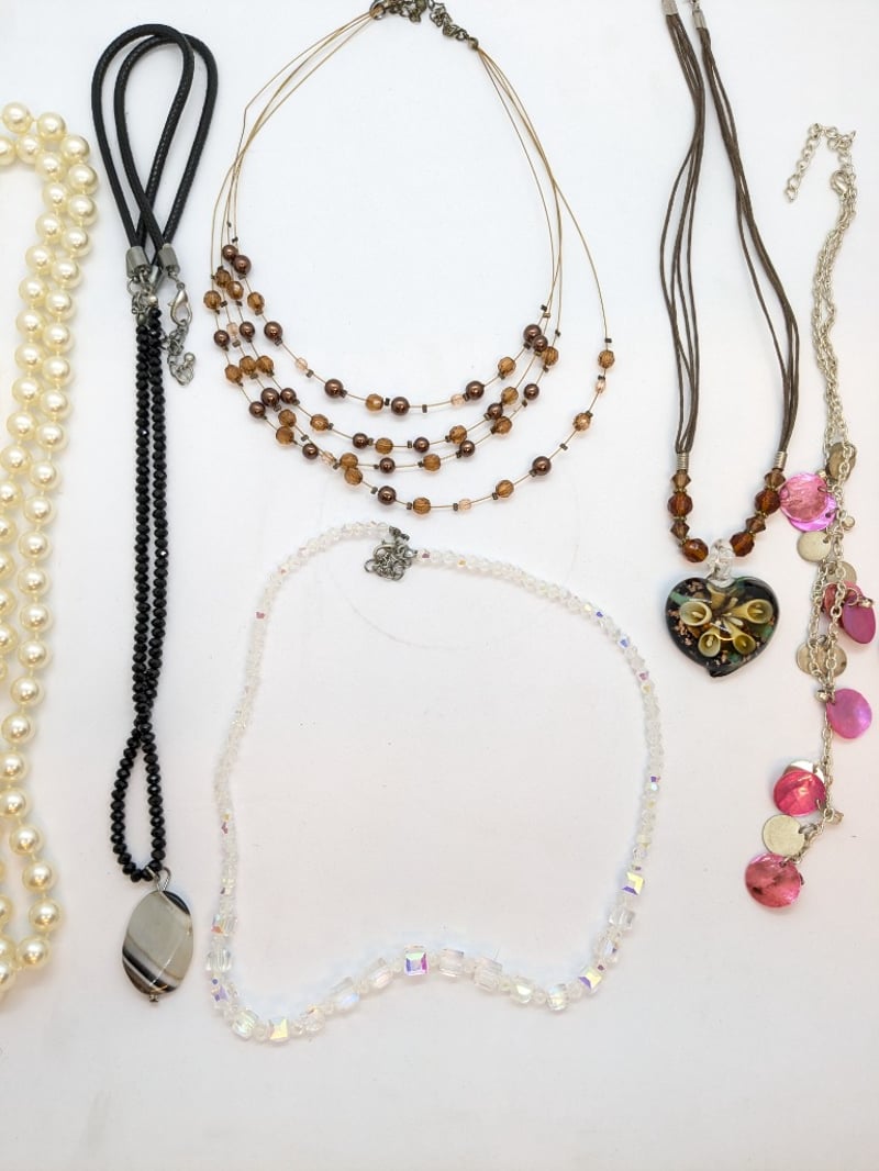 Includes Beaded Necklaces, Faux Pearl Necklaces, Etc