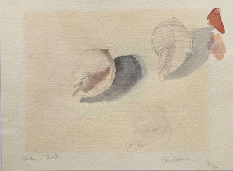 JANET DAWSON (1935 - )Limited Edition Watercolour On PaperTitle: Study - Shells 1984Image Size: 23cm x 30cmFrame Size: 29cm x 37cmEdition: 12/84Signature Details: Signed Lower RightTitle On Lower LeftCondition: Good - Refer To Images584404+3