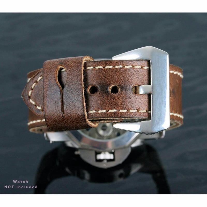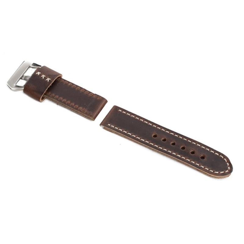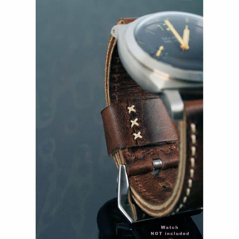 Dark Brown Genuine Leather Ammo Strap Stitch 26/26 With Buckle Fits Panerai Watch. Strap Length Is 115/70. Strap Will Fit Watches With 26Mm Lug Like Panerai 47Mm