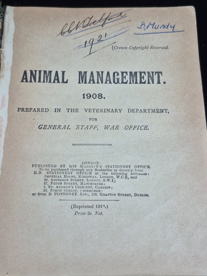 ANIMAL MANAGEMENT 1908 - MILITARY VETERINARY MANUAL, WAR OFFICE EDITION