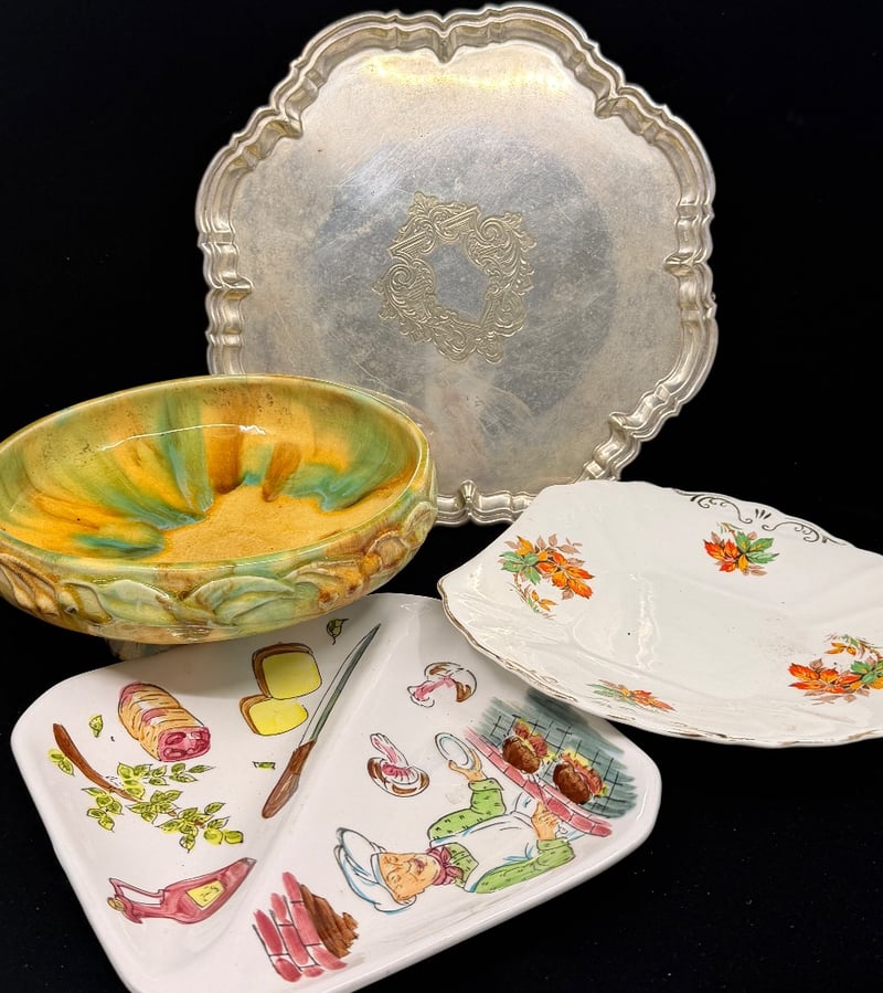 PLATE COLLECTION WITH SILVER SERVING TRAYCondition: Good - Refer To Images9D587790+3