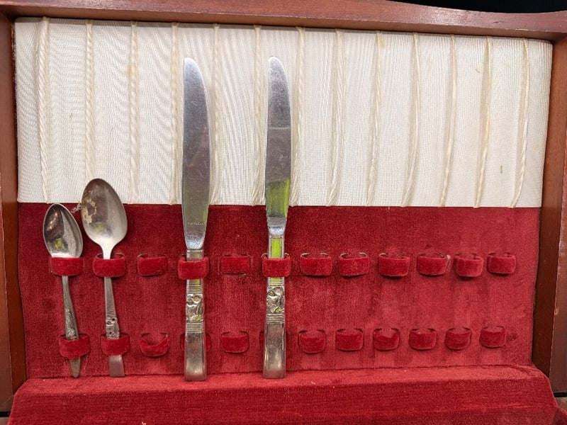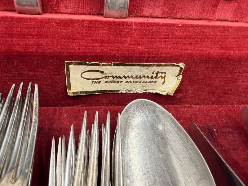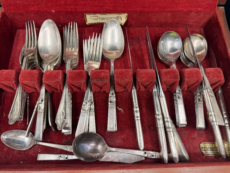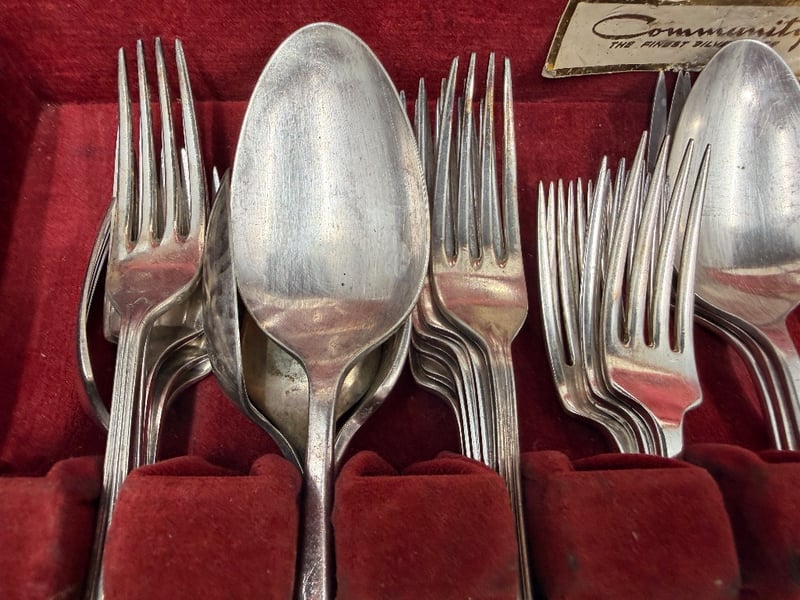 COMMUNITY SILVER PLATE FLATWARE SERVICE SET IN FITTED WOODEN CASE