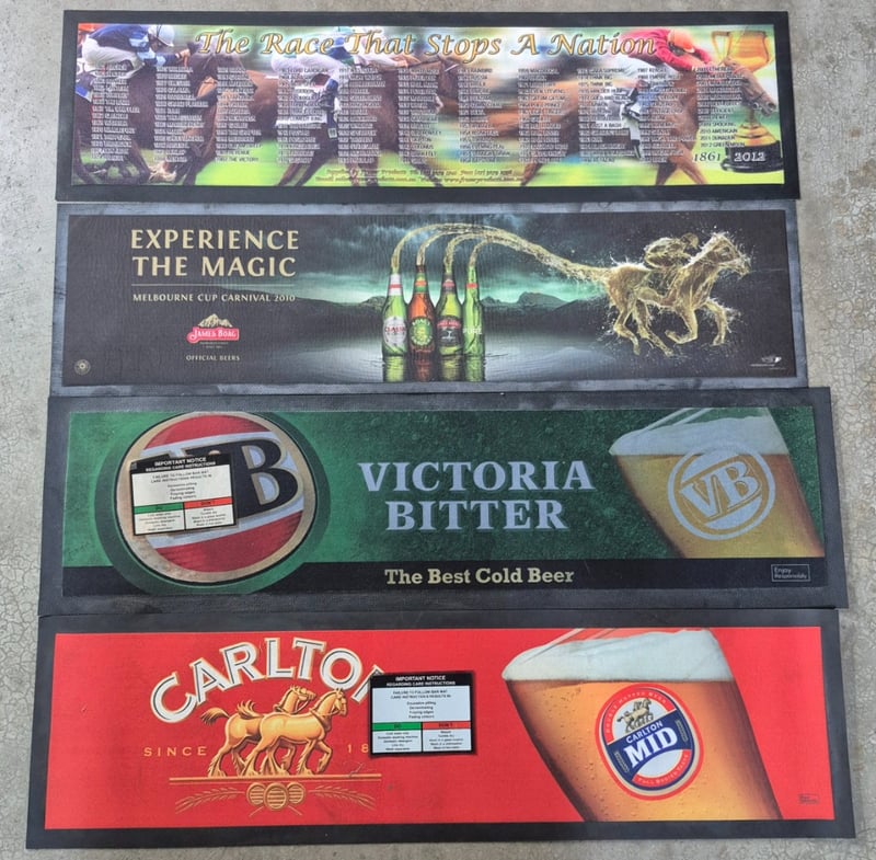COLLECTION OF BAR MATS INCLUDING CARLTON, VB, JAMES BORG AND MELBOURNE CUP