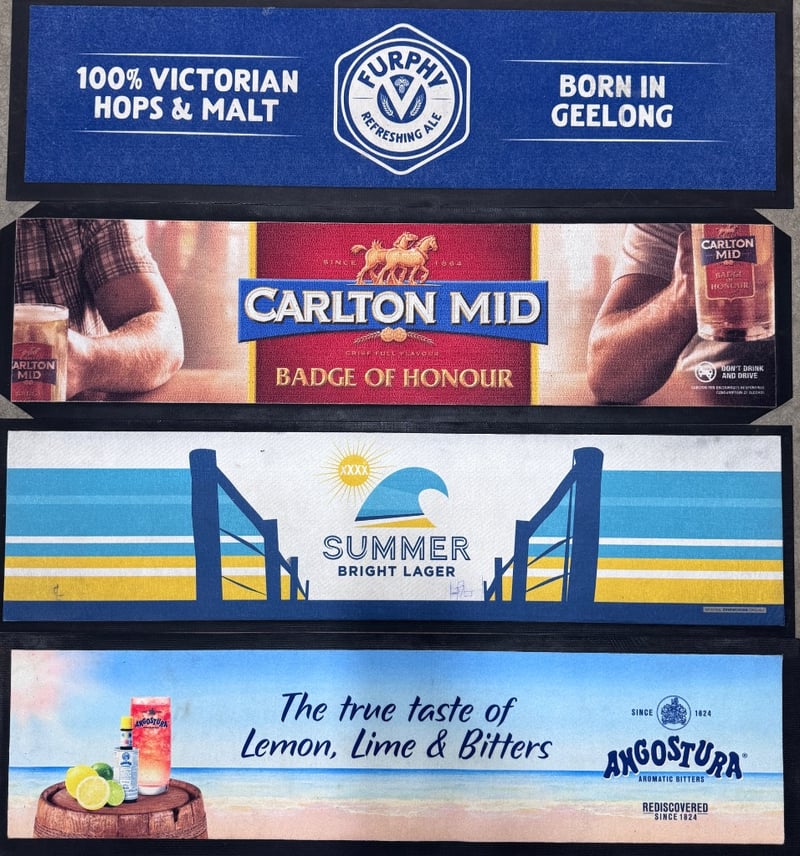 COLLECTIONS OF BAR MATS INCLDUING FURPHY, CARLTON MID, XXXX SUMMER AND ANGOSTURAItem Size: Height: 45.5cm, Width: 85.5cmCondition: Good - Refer To Images586393+27
