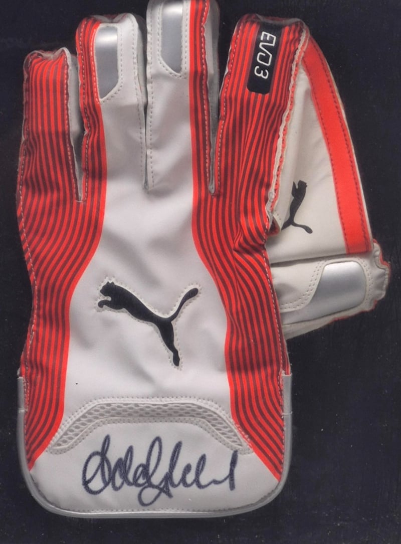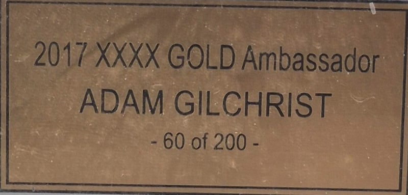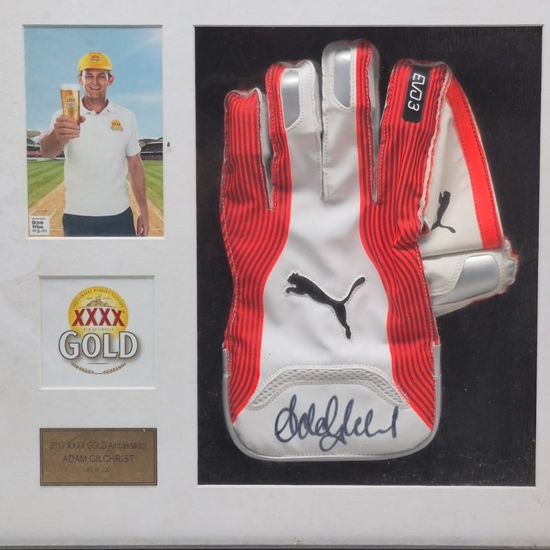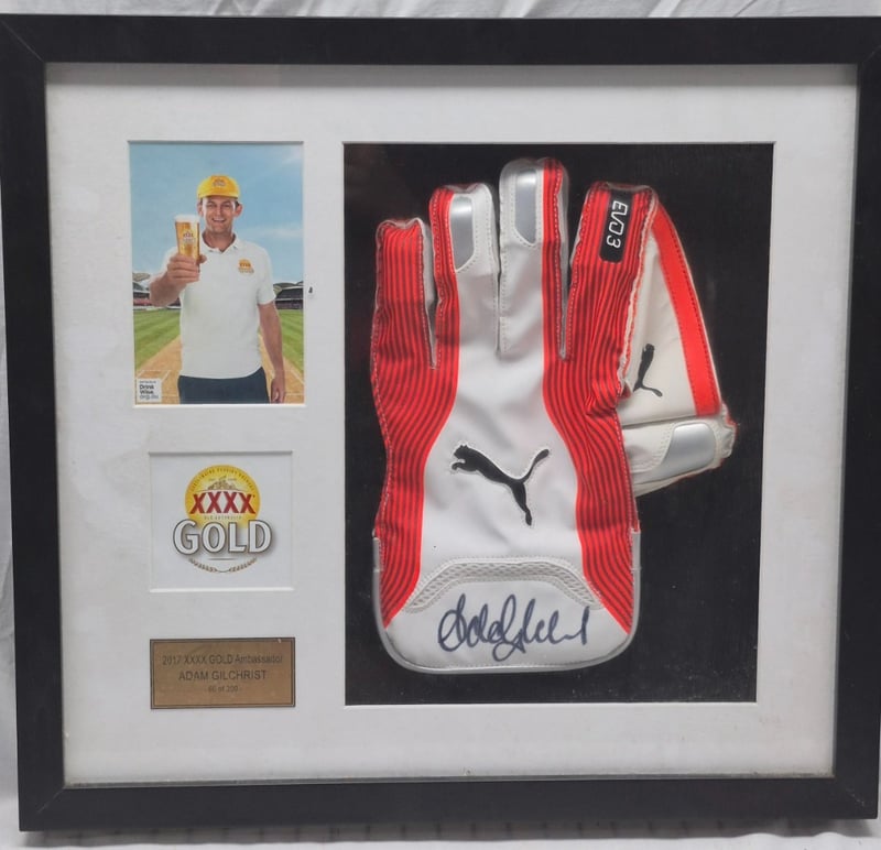 ADAM GILCHRIST SIGNED GLOVE 2017 XXXX GOLD AMBASSADOR