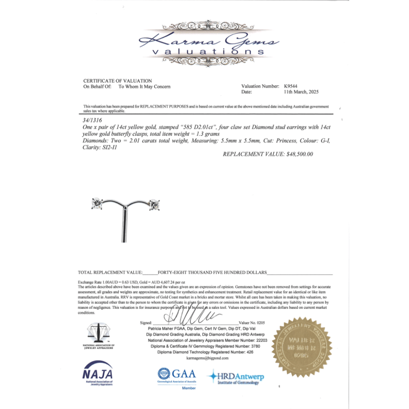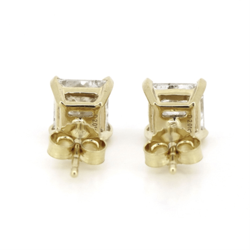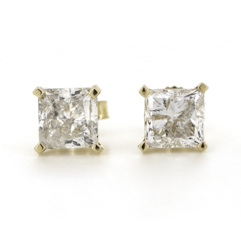 The Centres Feature, 2 Princess Cut, Diamonds (2.01Ct Tdw, G-I Colour, Si2-I1 Clarity), Claw Set. Earrings Have Post Backs And Come With, 14K Yellow Gold Backs.