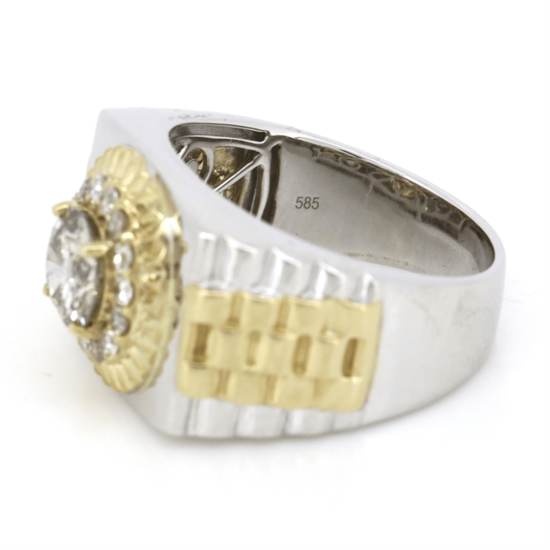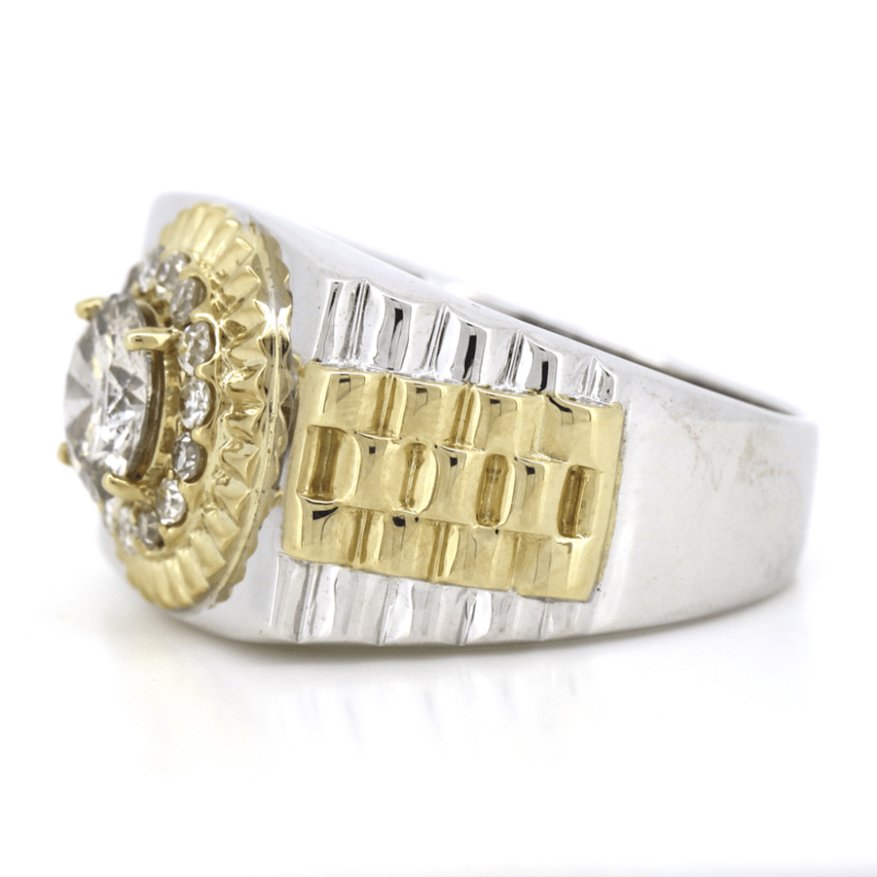 14K WHITE/YELLOW GOLD, CHAMPAGNE DIAMOND, GENTS RING.