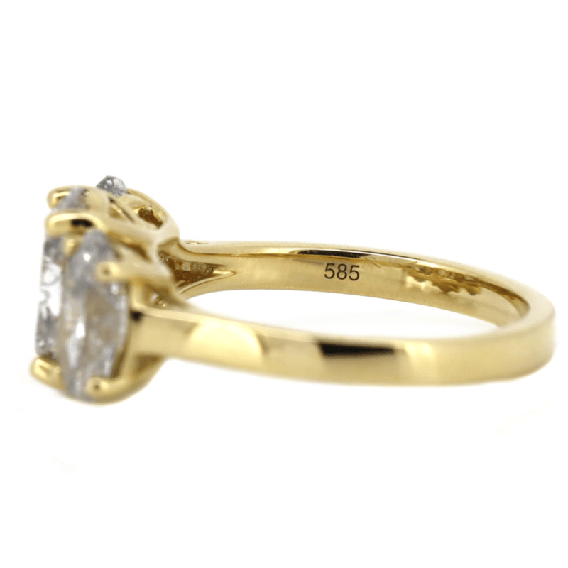 The Centre Features, One Oval Faceted Cut, Diamond (1.90Ct, H-I Colour, I2 Clarity), 4 Claw Set. Flanking Either Side Of The Centre Are, 2 Oval Faceted Cut, Diamonds (1.97Ct Tdw, H-I Colour, I Clarity), Claw Set. Ring Size P.