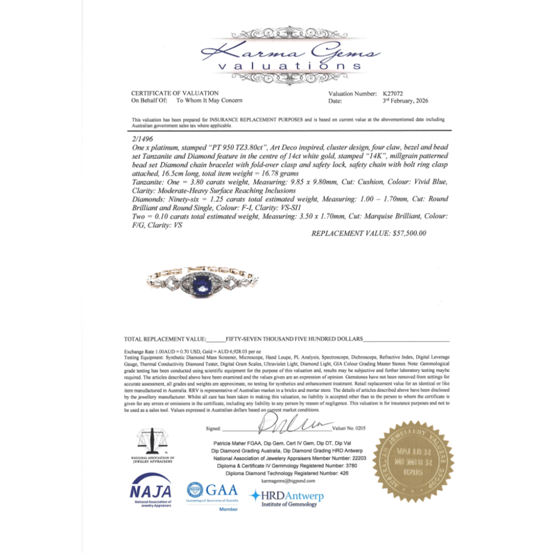 This valuation has been conducted by an independent third-party professional. The valuation amount is an assessment by the issuing valuer and does not reflect the auction value of the item.