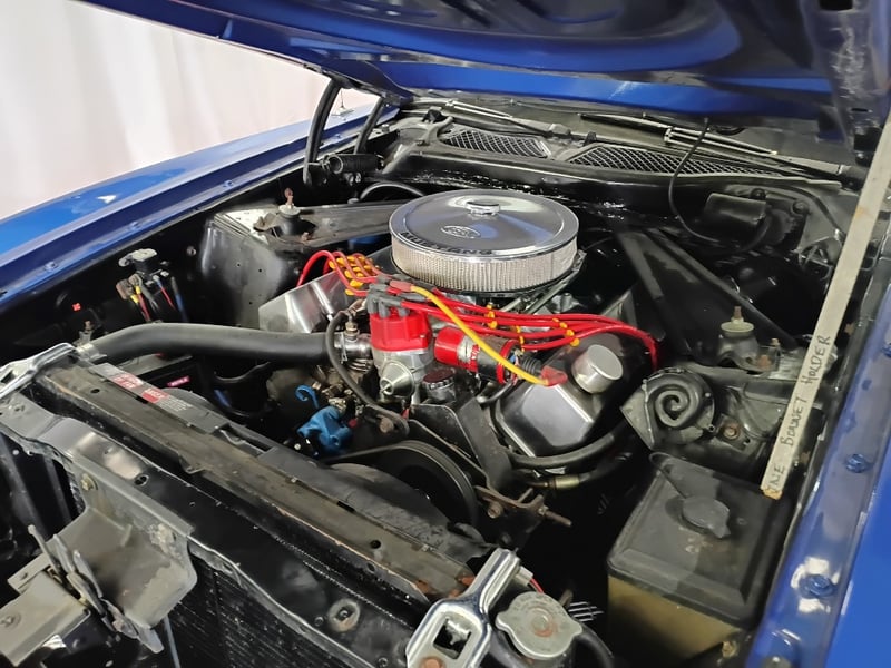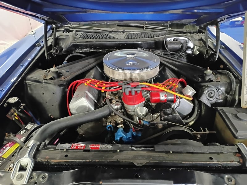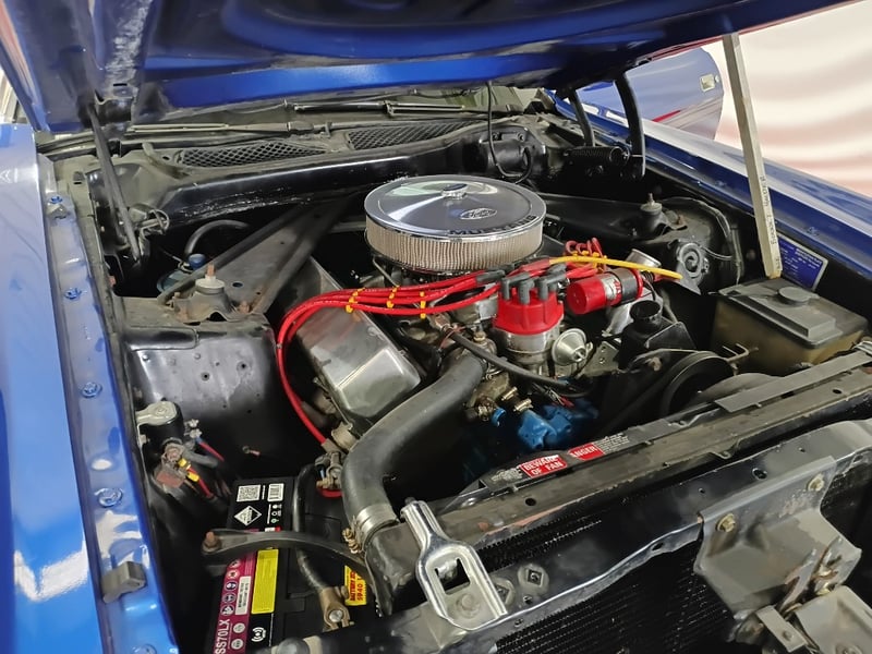 Power comes from a rebuilt 460ci big‑block V8 (rebuilt approximately seven years ago), producing an unmistakable soundtrack through headers and a custom twin exhaust system. The engine bay features a suite of performance upgrades including an Edelbrock intake manifold, 750cfm Holley carburettor with vacuum secondaries, MSD electronic ignition, alloy rocker covers, alloy heads, roller rockers, performance camshaft, and renewed internal components. Drive is delivered via a rebuilt C6 automatic transmission to a 9‑inch limited‑slip differential.