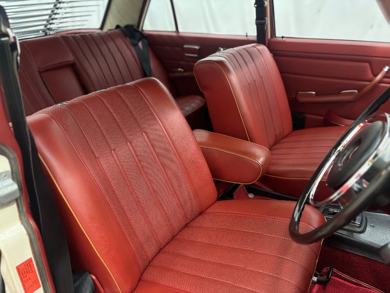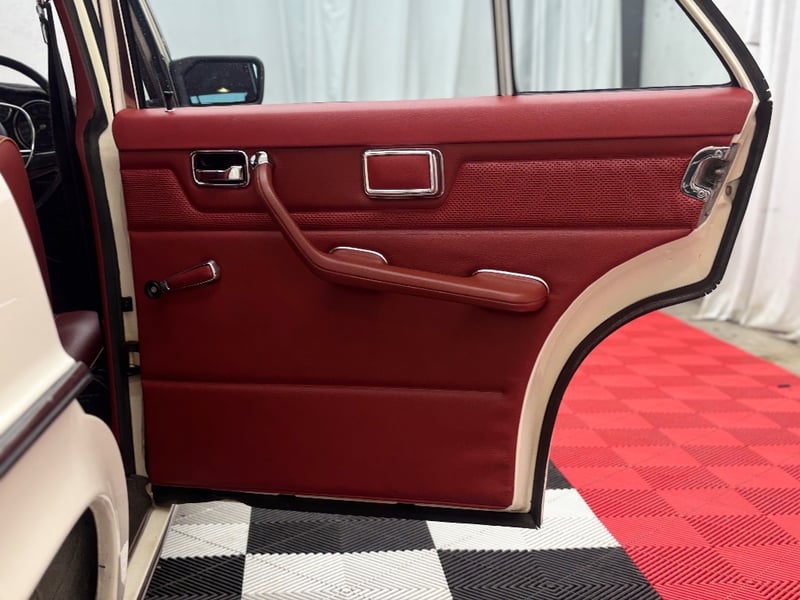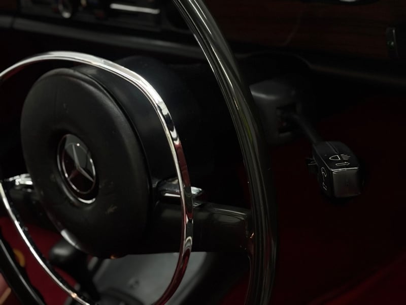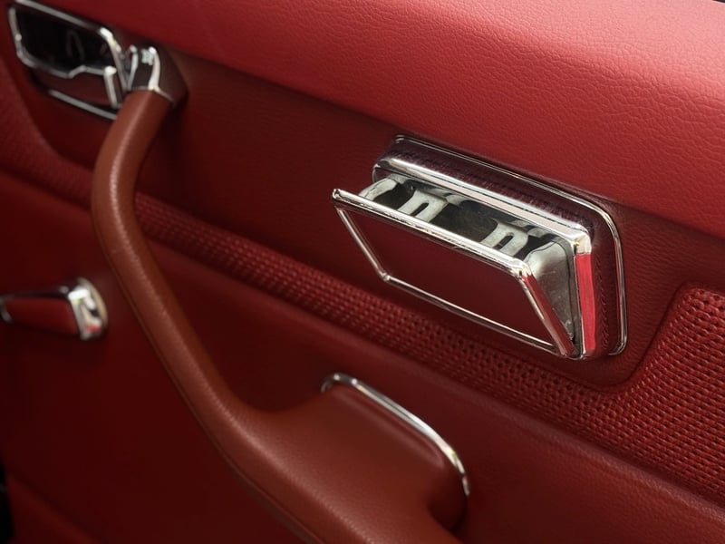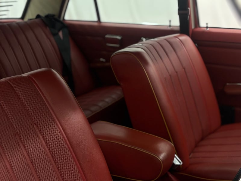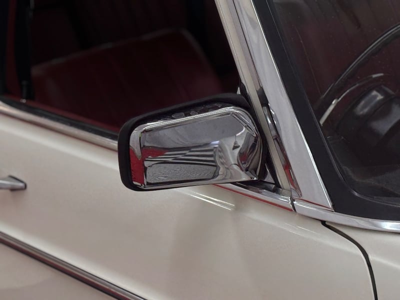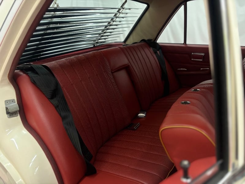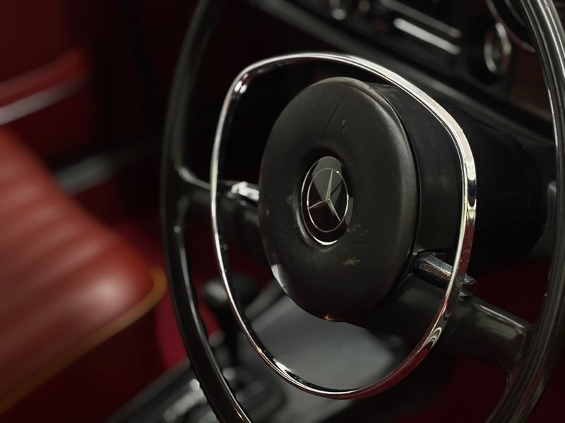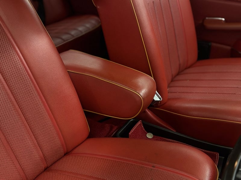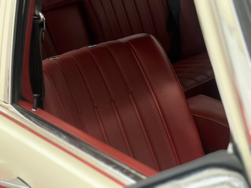 This Mercedes‑Benz 280C presents as a stylish example of Mercedes’ elegant 1970s design, combining solid engineering with timeless luxury. The interior is appointed with red leather upholstery complemented by a distinctive Zebrano wood dashboard, climate control, tinted windows, alloy wheels, and a Pioneer speaker system.