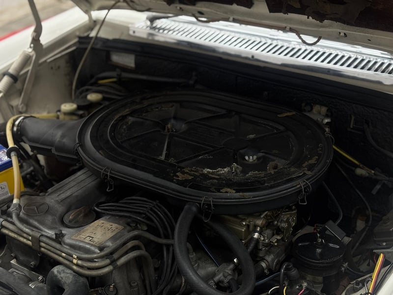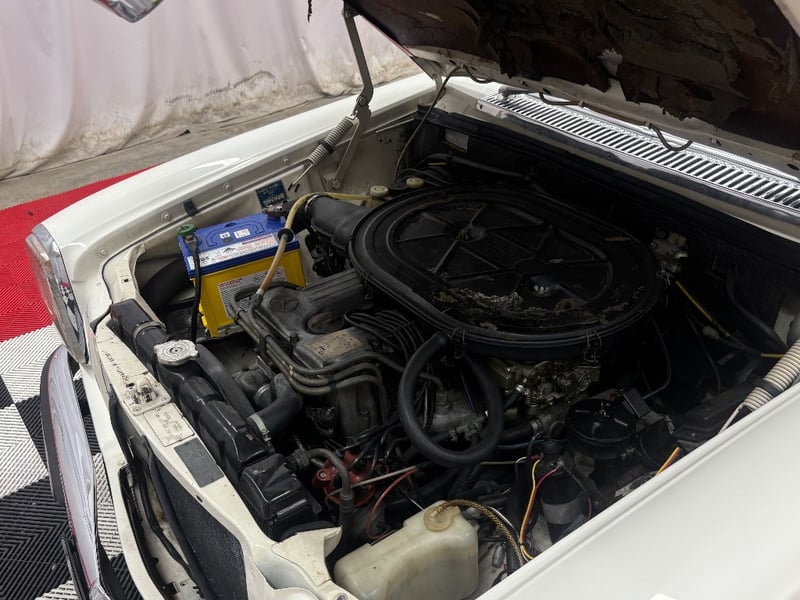 The vehicle shows some age‑related wear consistent with its era, including a small headliner tear near the passenger sun visor, missing front seat headrests, and a worn engine bay headliner. These items present an opportunity for light cosmetic improvement while retaining the vehicle’s originality and character. Overall, this 280C offers classic Mercedes comfort and collectability, making it well suited to enthusiasts seeking a usable classic or a light restoration candidate. Inspection is recommended.