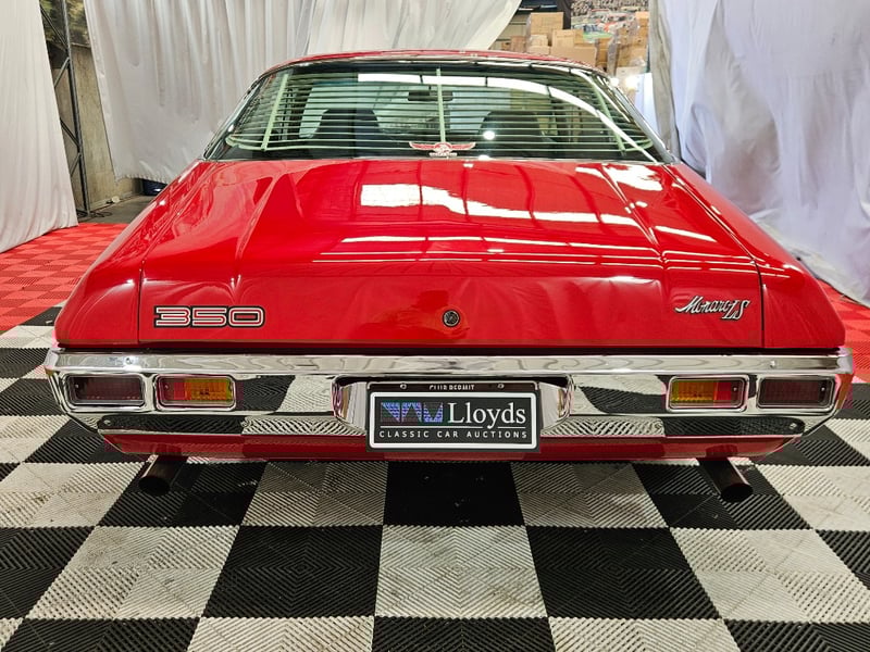 1974 Holden HJ Monaro LS two‑door coupe finished in red. Rear‑wheel drive configuration powered by a 5.7‑litre (350ci) V8 petrol engine paired with an automatic transmission. Odometer indicates 4,292 kilometres.