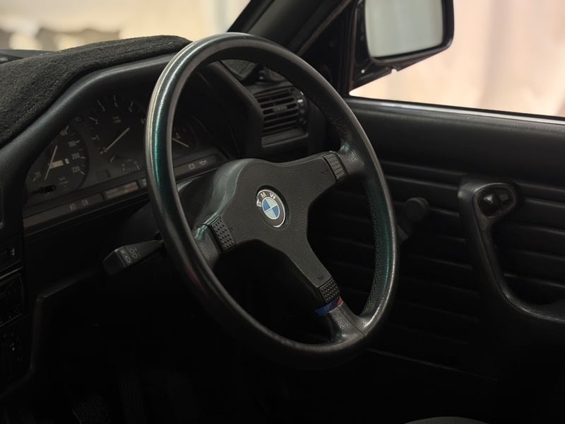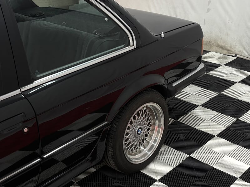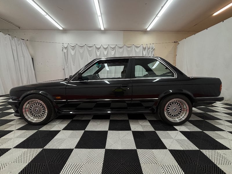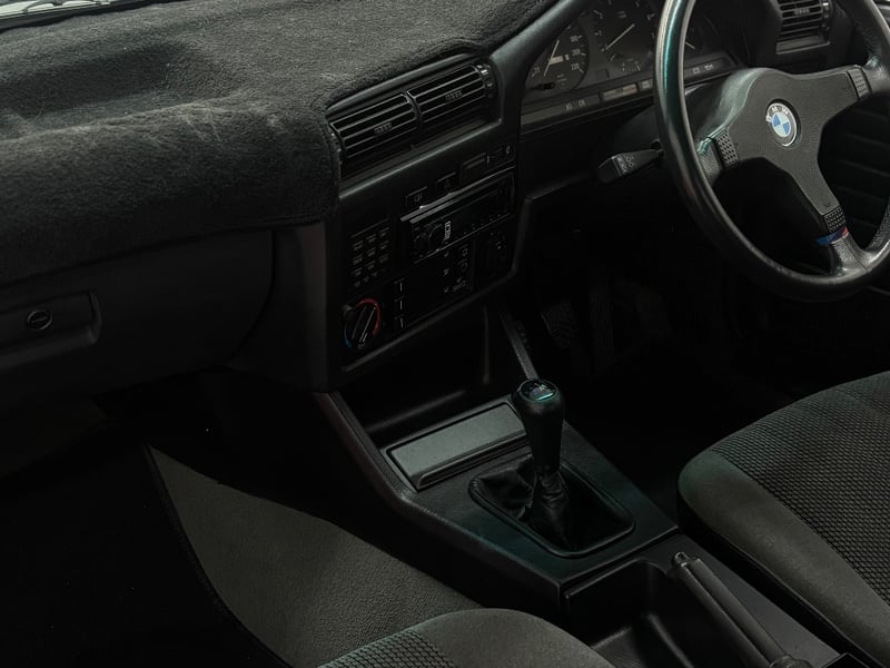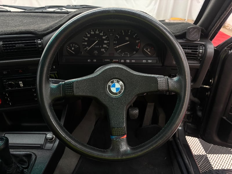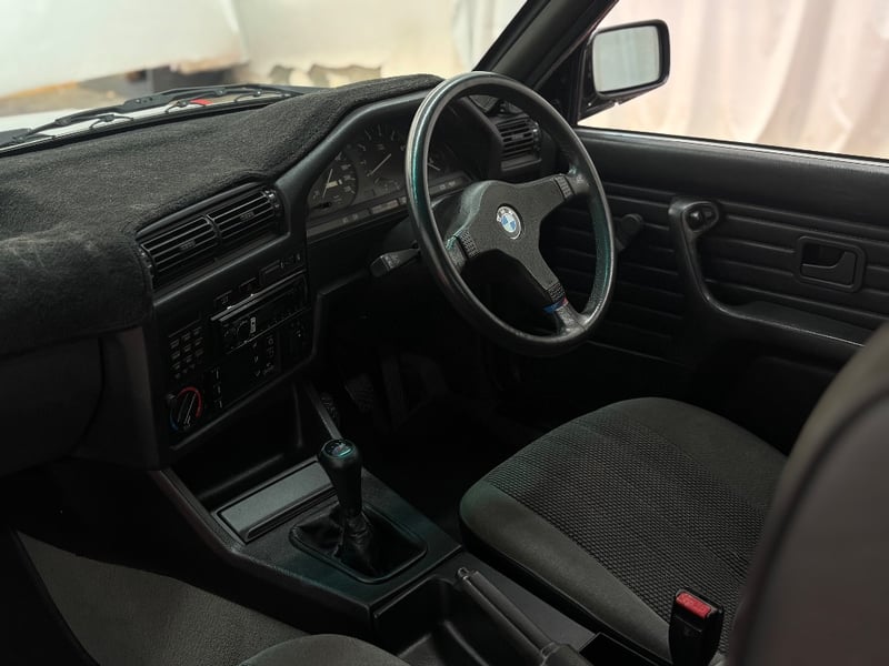 This BMW E30 323i represents one of the most sought‑after classic BMW driver’s cars, combining lightweight chassis dynamics with the smooth and responsive inline‑six engine. Presented in classic black, the vehicle features alloy wheels and a factory sunroof, enhancing both appearance and usability.