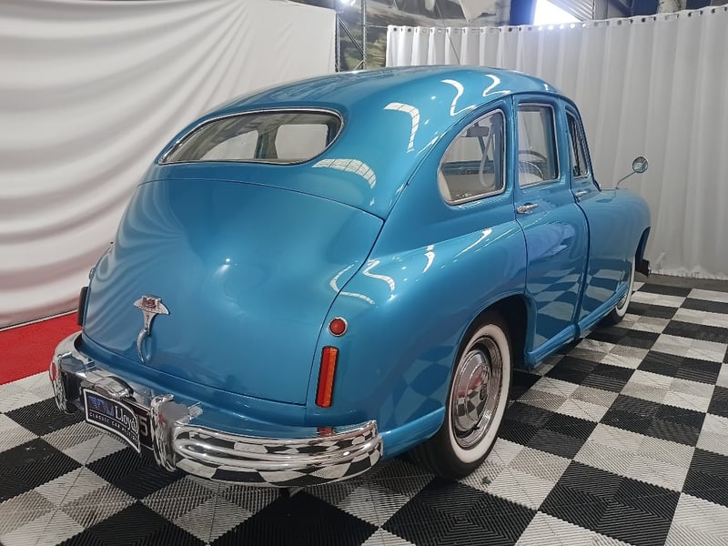 1949 Standard Vanguard four‑door sedan finished in an eye‑catching turquoise. Rear‑wheel drive configuration powered by a 2.1‑litre inline‑four petrol engine, paired with a four‑speed manual transmission. Odometer indicating 57 miles.