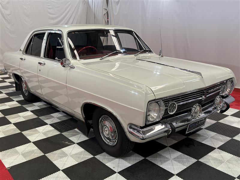 1967 Holden HR Premier four‑door sedan finished in classic white with a striking red interior. Rear‑wheel drive configuration powered by a 3.0‑litre (186ci) inline‑six petrol engine, paired with a four‑speed manual transmission. Odometer indicating 43,504 miles.