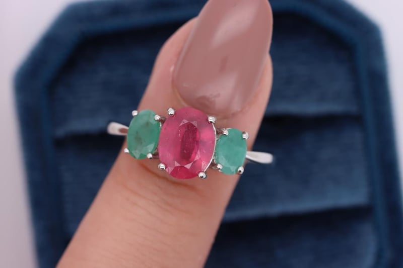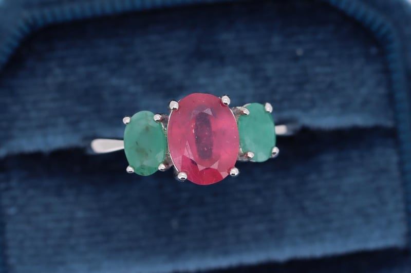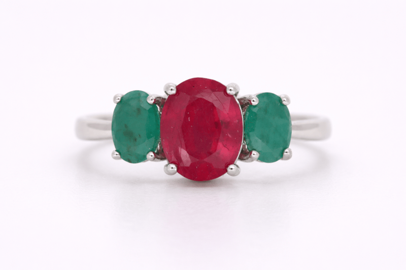 NATURAL RUBY & EMERALD RING ON 925 SILVER - WITH CERTIFICATE