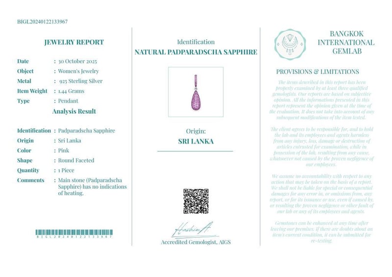 Comments : Main Stone (Padparadscha Sapphire) Has No Indications Of Heating.