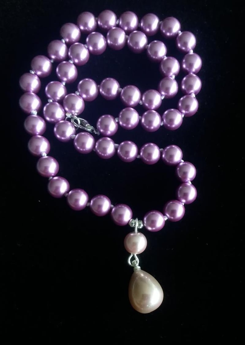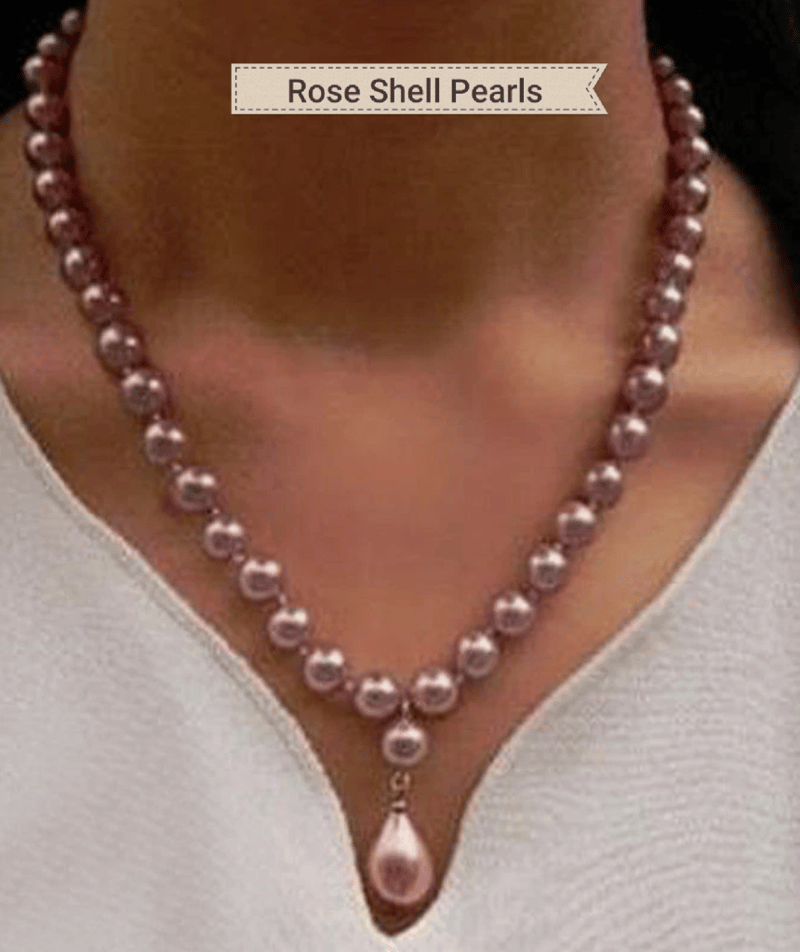 MAUVE 8MM SEA SHELL PEARL NECKLACE WITH PENDANT