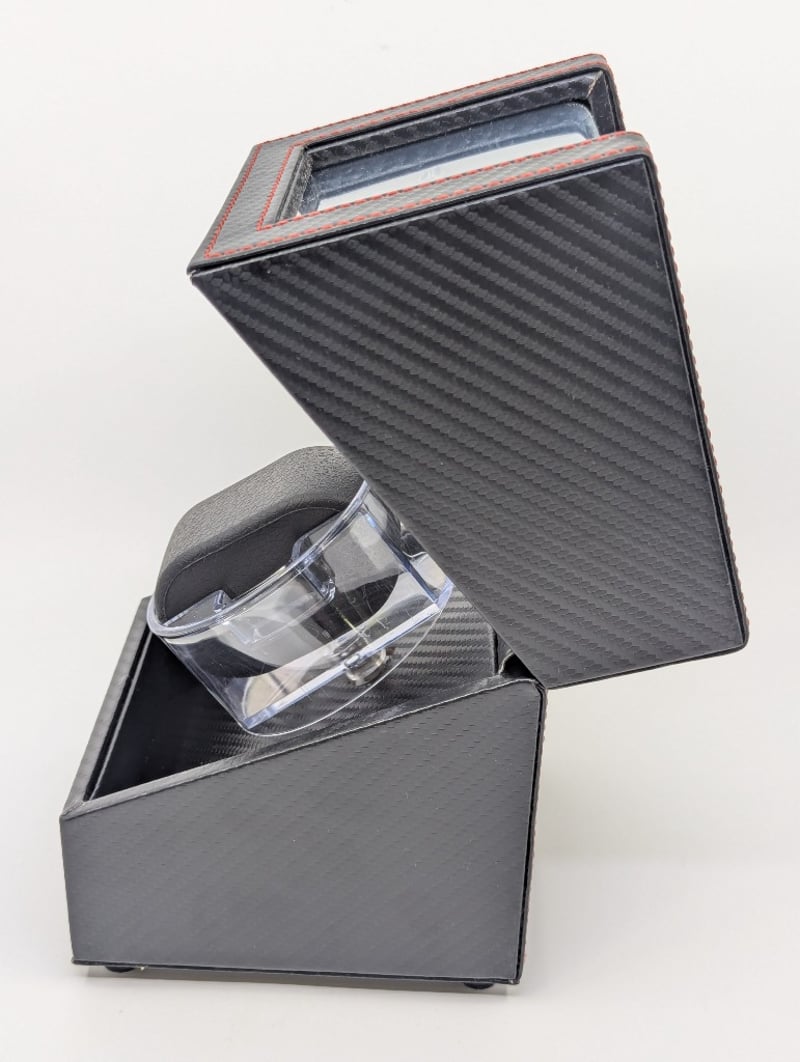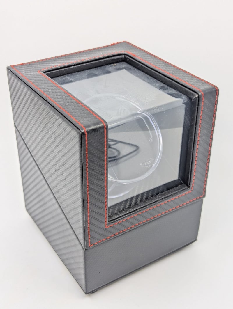 Includes Electric Watch Winder, Black Exterior With Red Stitching, Size: 17Cm H X 13Cm W X 14Cm D